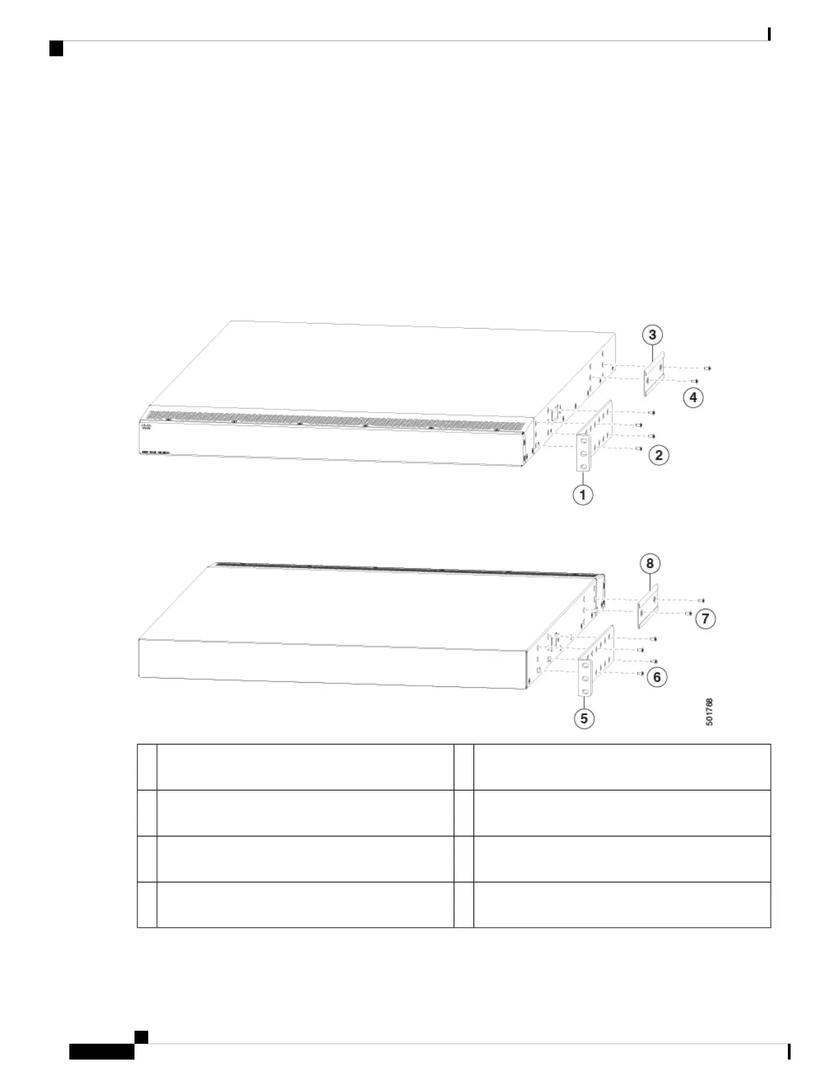 b) Position a front-mount bracket so that four of its screw holes are aligned to the screw holes on the side of the chassis.