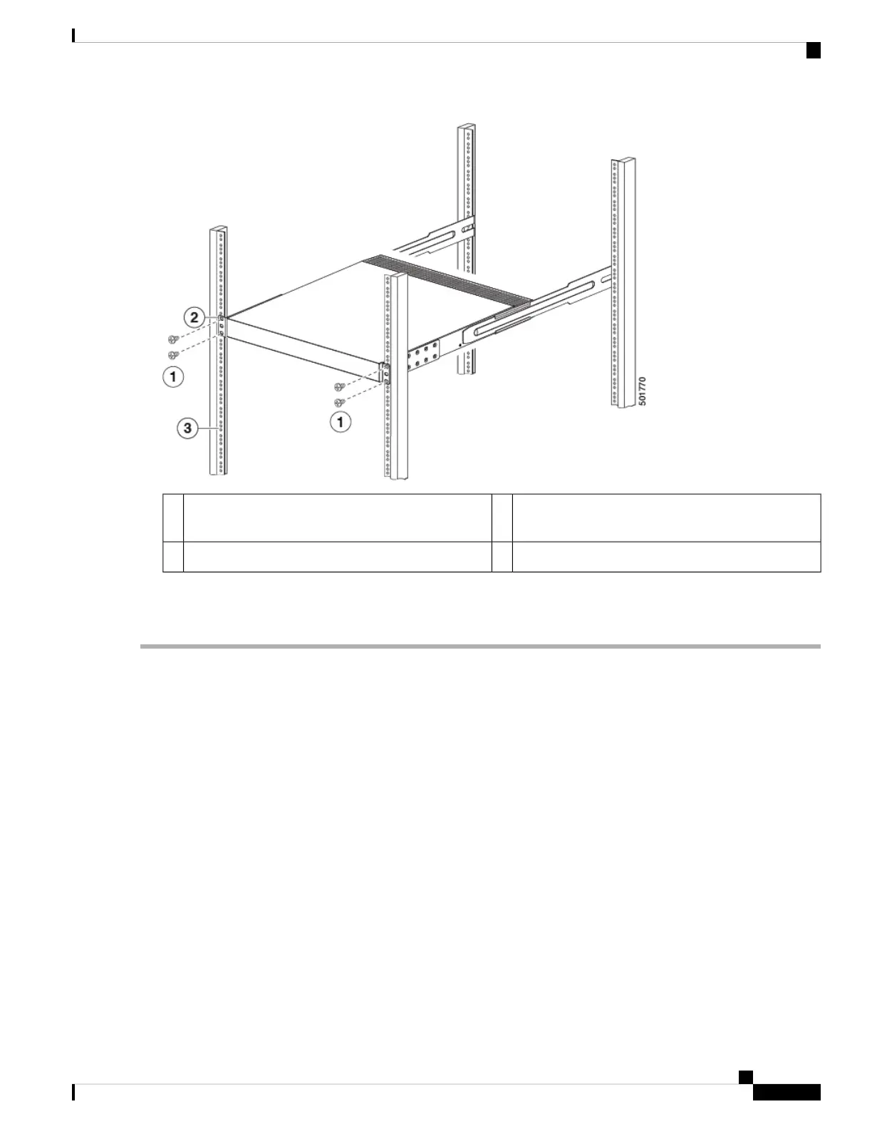 Mounting rails on rack or cabinet posts.3Fasten the chassis to the front of the rack with two