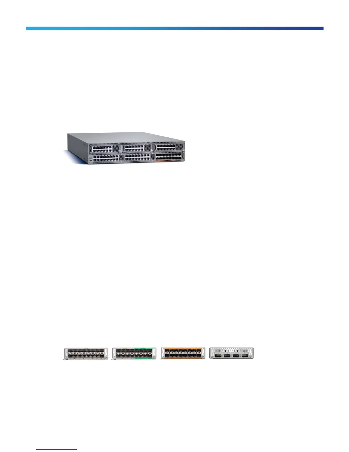 10 Gigabit Ethernet and FCoE Module, 16 port Unified Port Module and 4 port QSFP module.