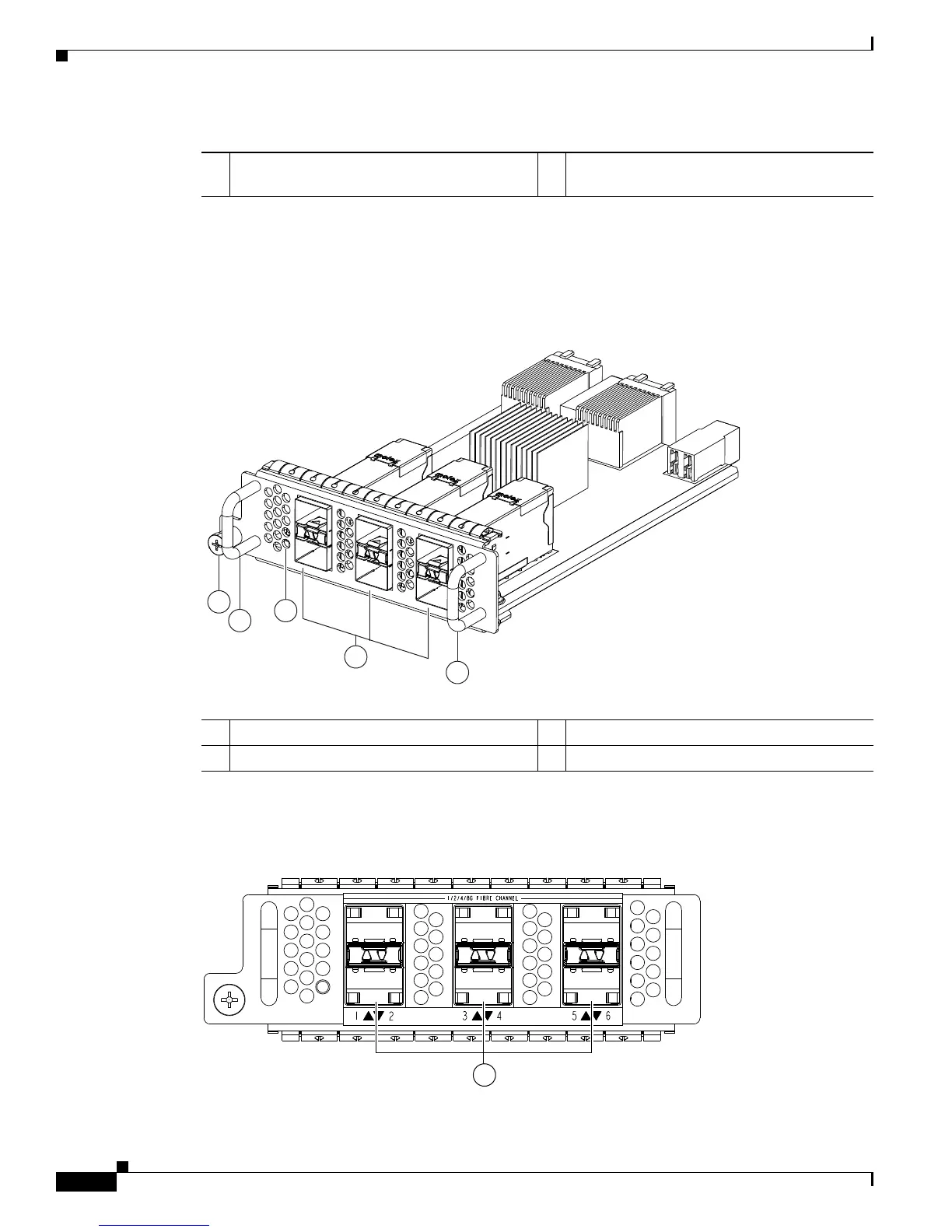1 Captive screw 3 Six 8-, 4-, 2-, or 1-Gbps Fibre Channel ports