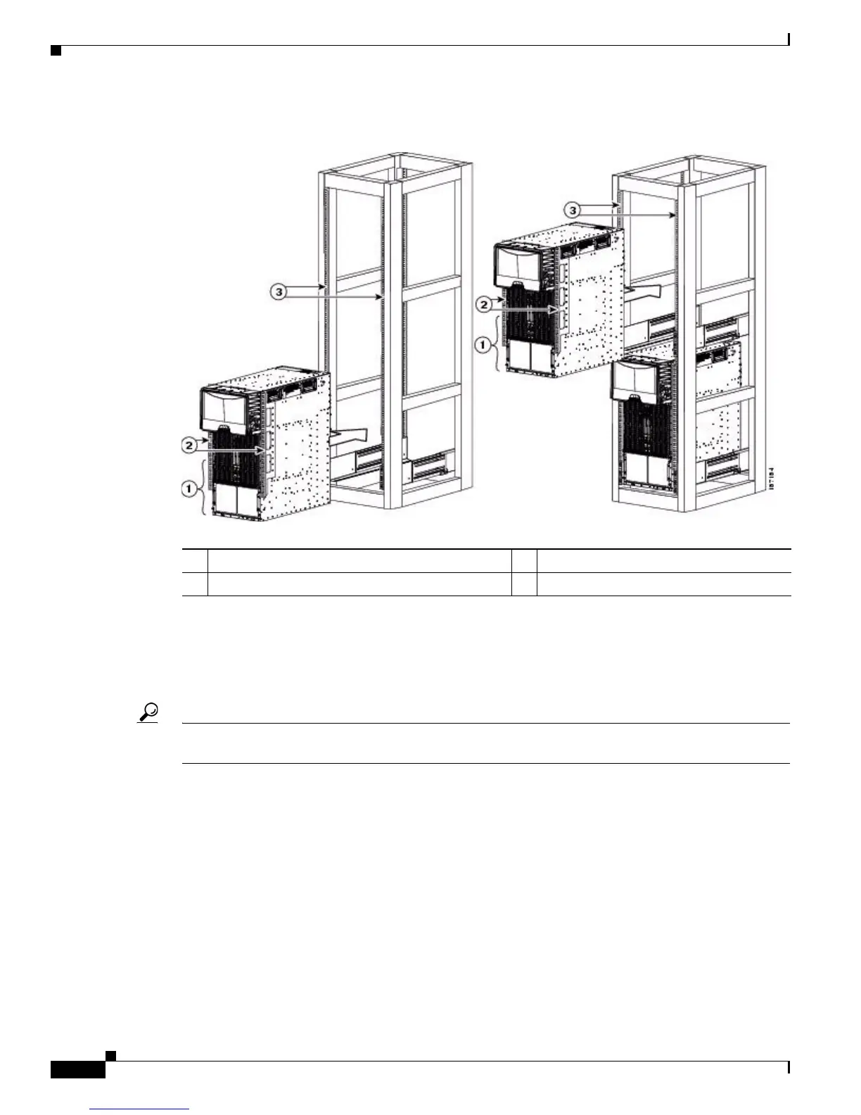 1 Push the lower half of the front side of the chassis 3 Rack vertical mounting rails
