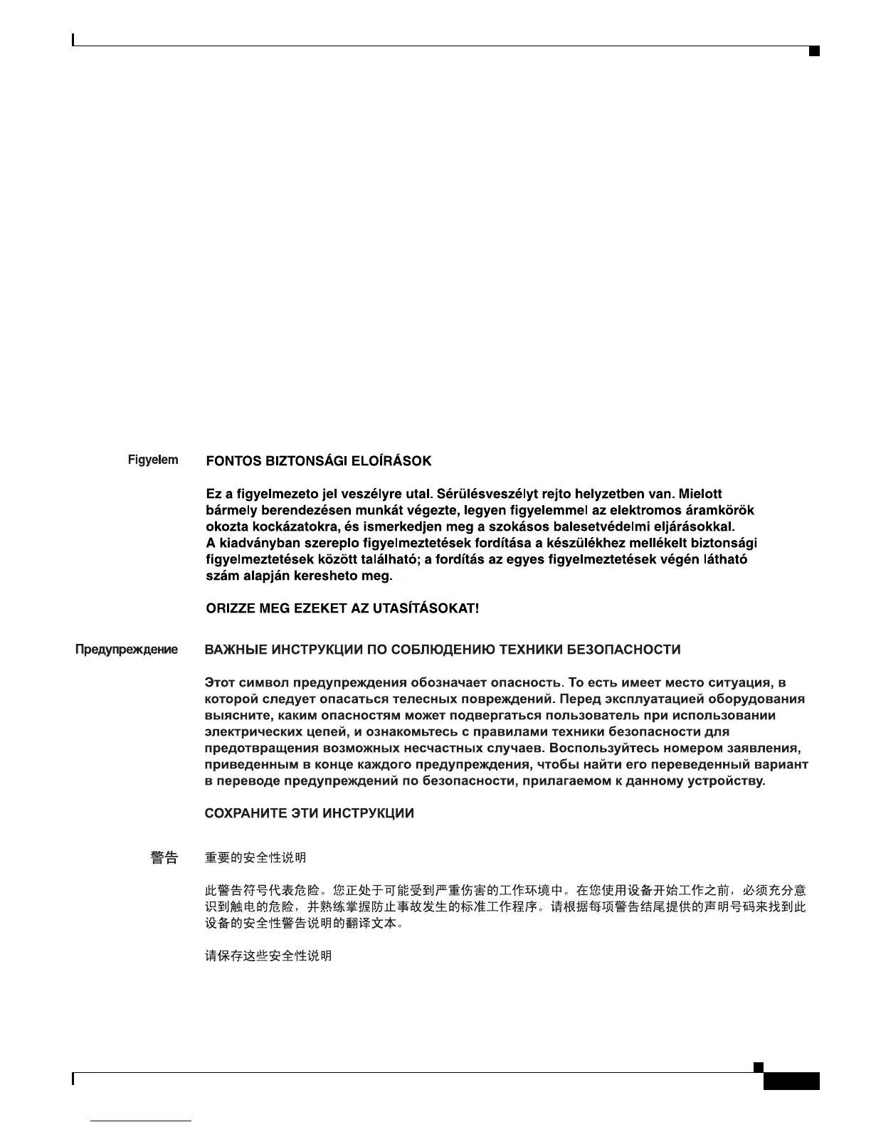 varje varning för att hitta dess översättning i de översatta säkerhetsvarningar som medföljer denna