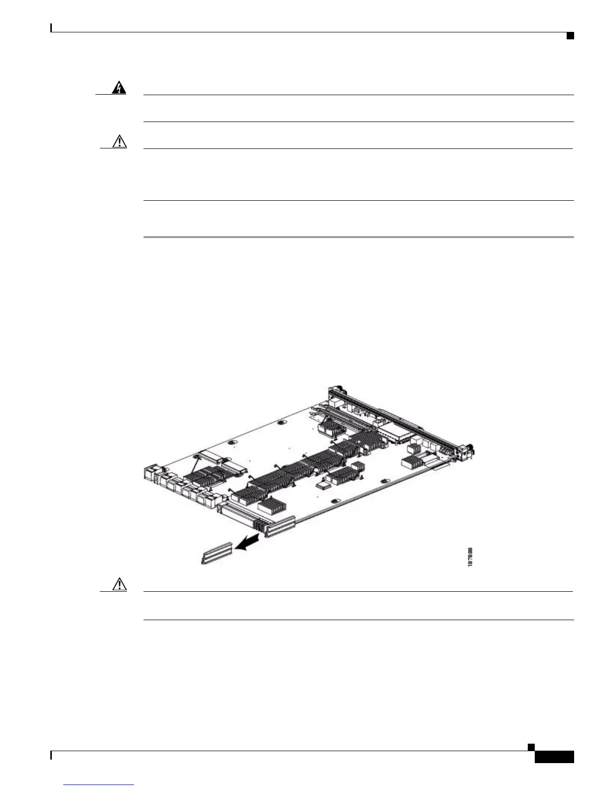 Step 3 On the currently installed supervisor module (the module that you are going to remove), loosen the two