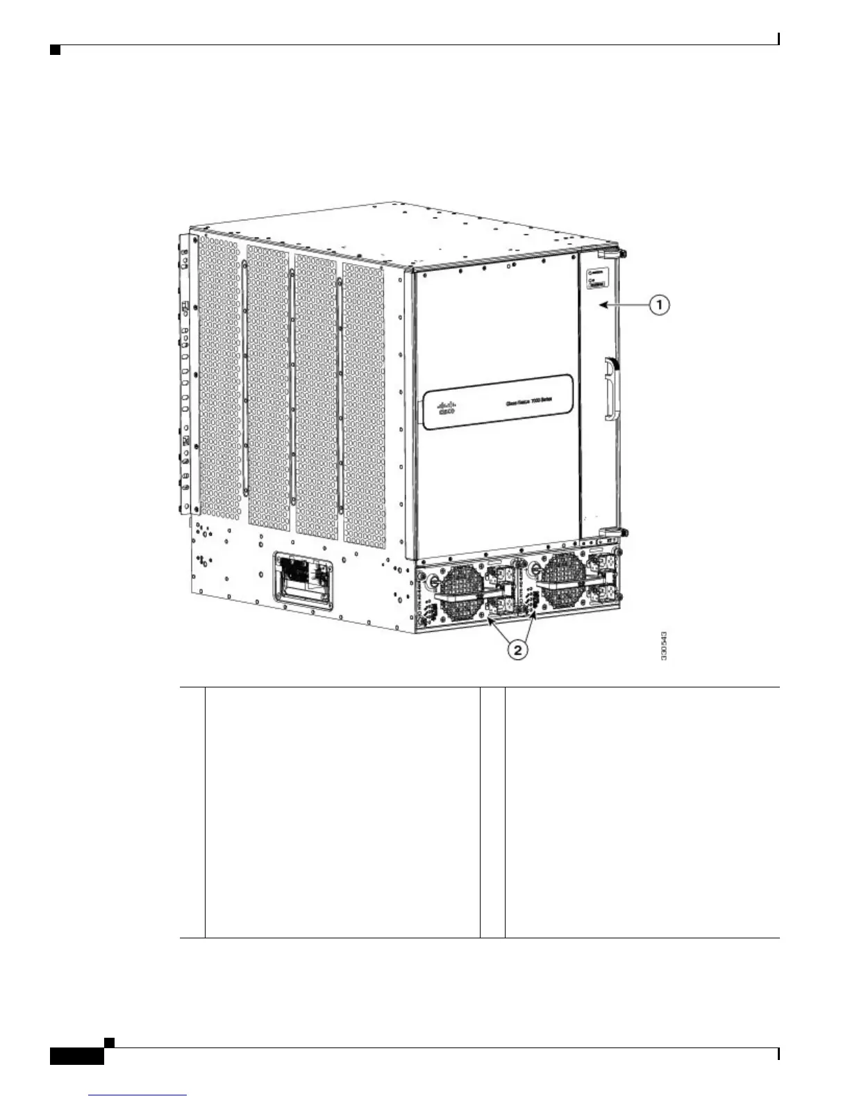 1 Fan tray (1) 2 Power supplies (1 or 2)—these modules are a