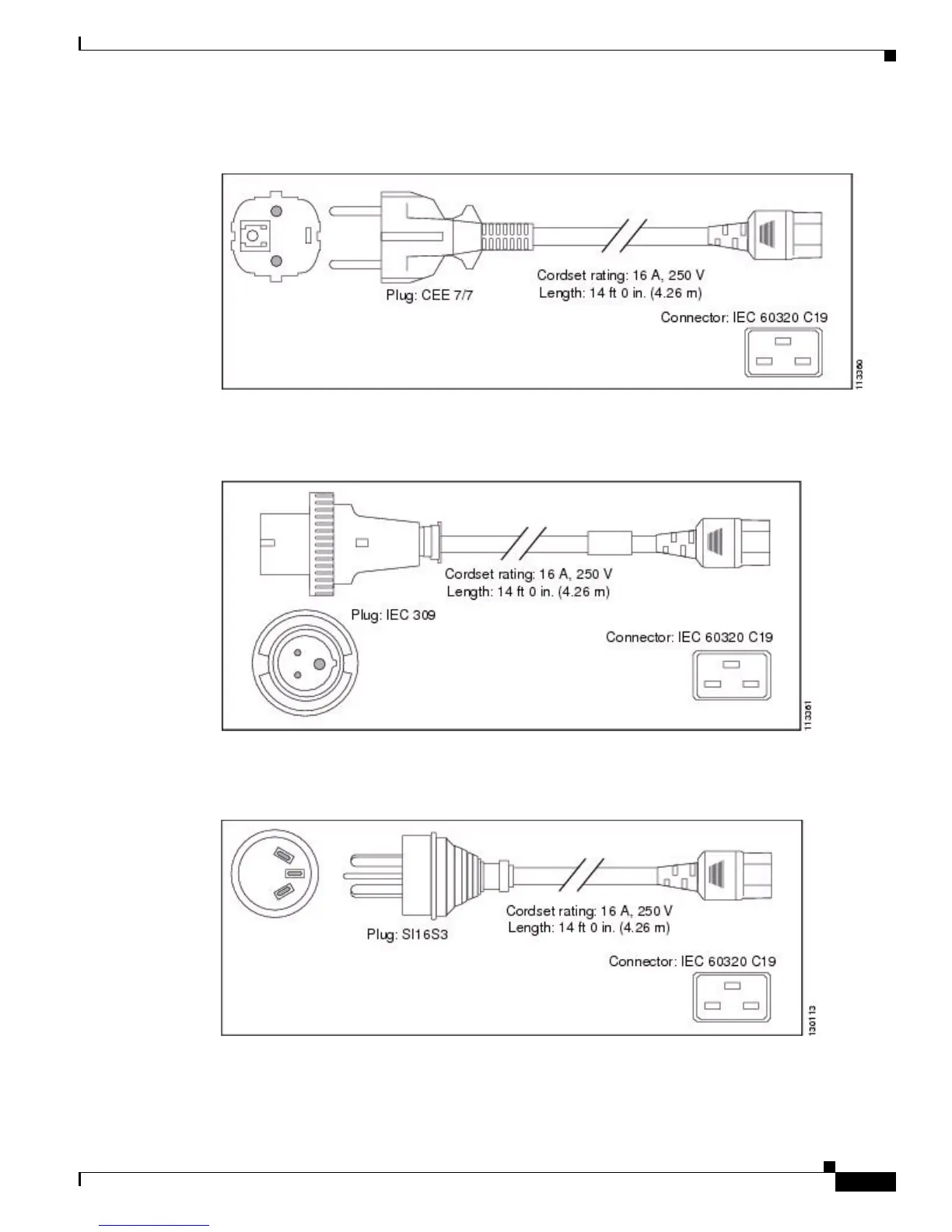 Figure A-3 CAB-AC-2500W-EU Power Cord and Connectors for the 6-kW AC Power Supply Unit
