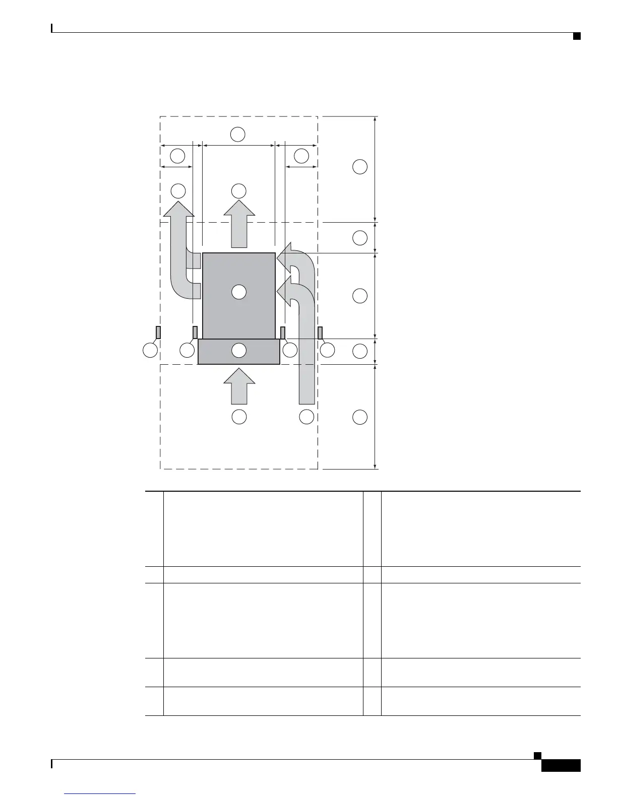 4 Vertical rack-mount post for neighboring rack 12 Rear service clearance required to replace fan