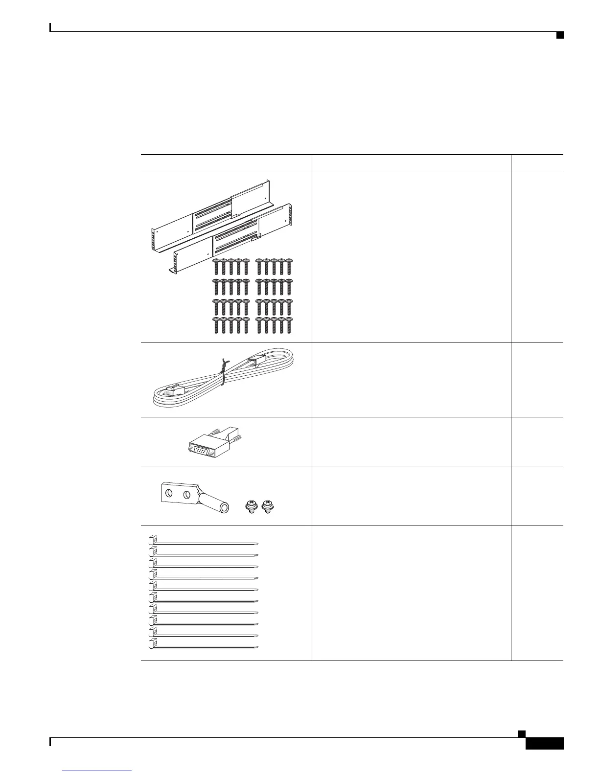 Table C-6 Cisco Nexus 7010 System Accessory Kit Contents
