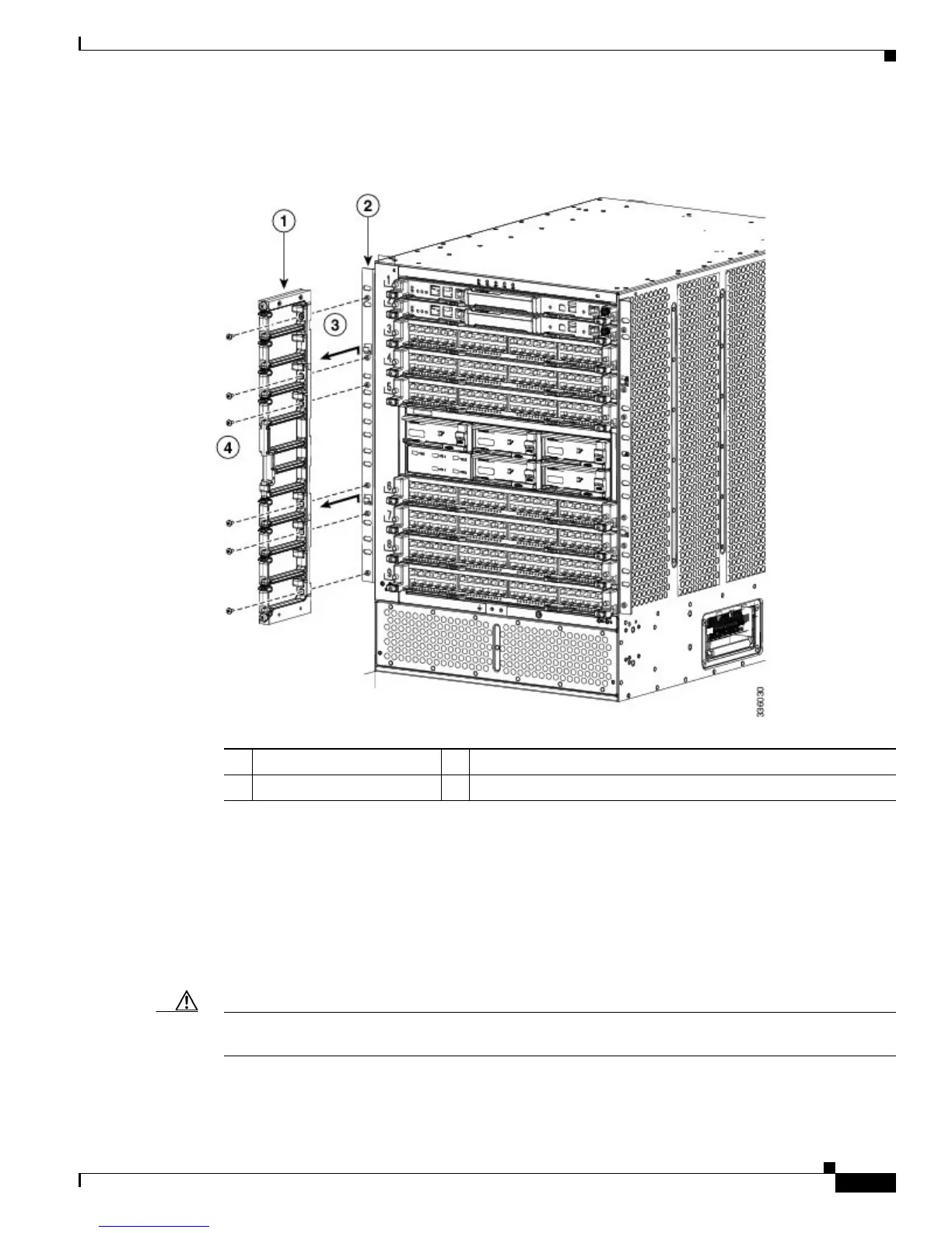 Caution Do not remove the six screws used to hold the two bottom support brackets to the rack. They are required