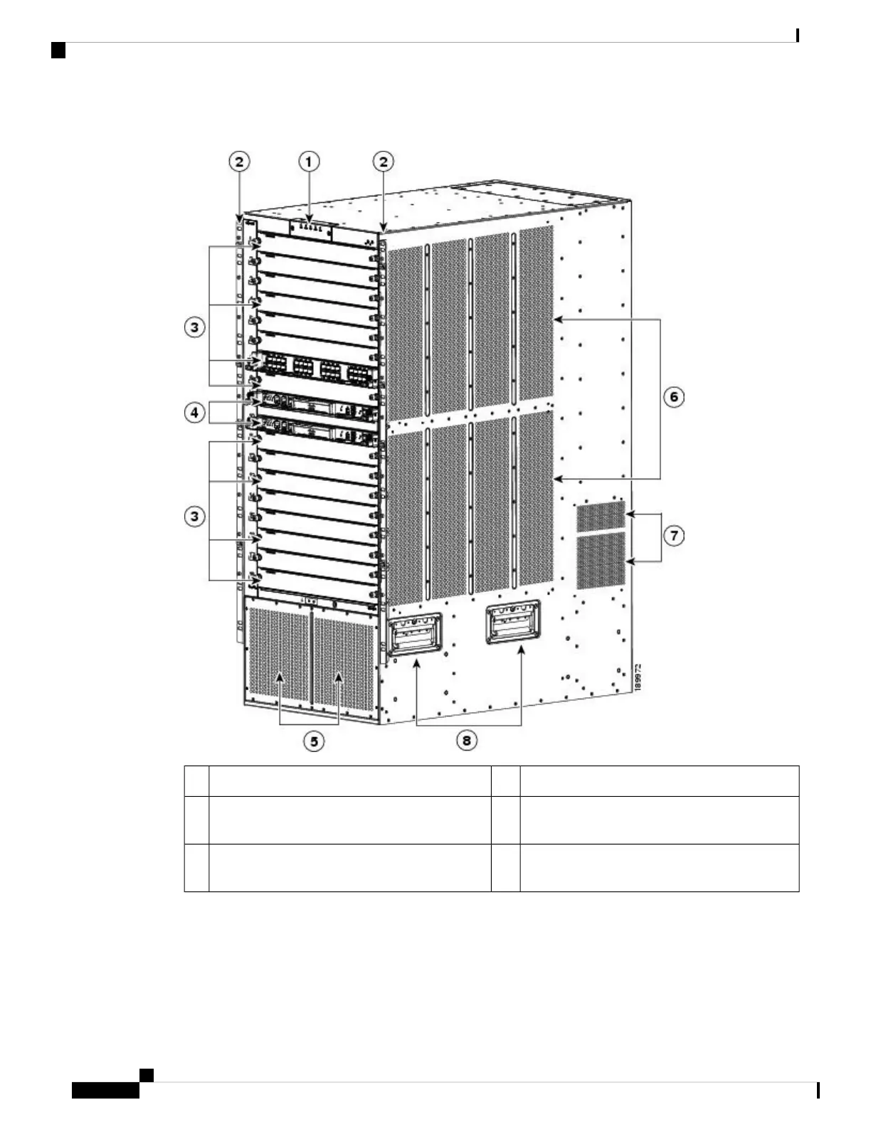 Figure 8: Standard Hardware Features on the Front and Sides of the Cisco Nexus 7018 Chassis