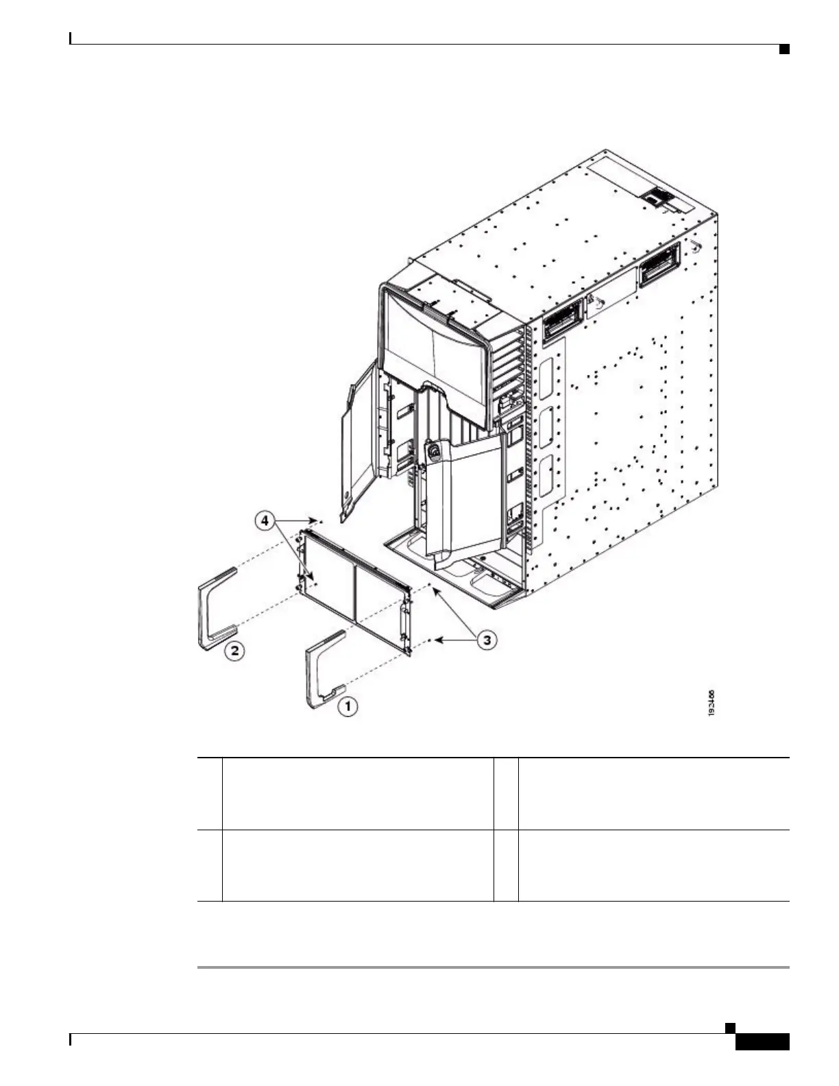 Step 7 Realign the EMI panel to the air intake area on the chassis, screw its four captive screws to the chassis,