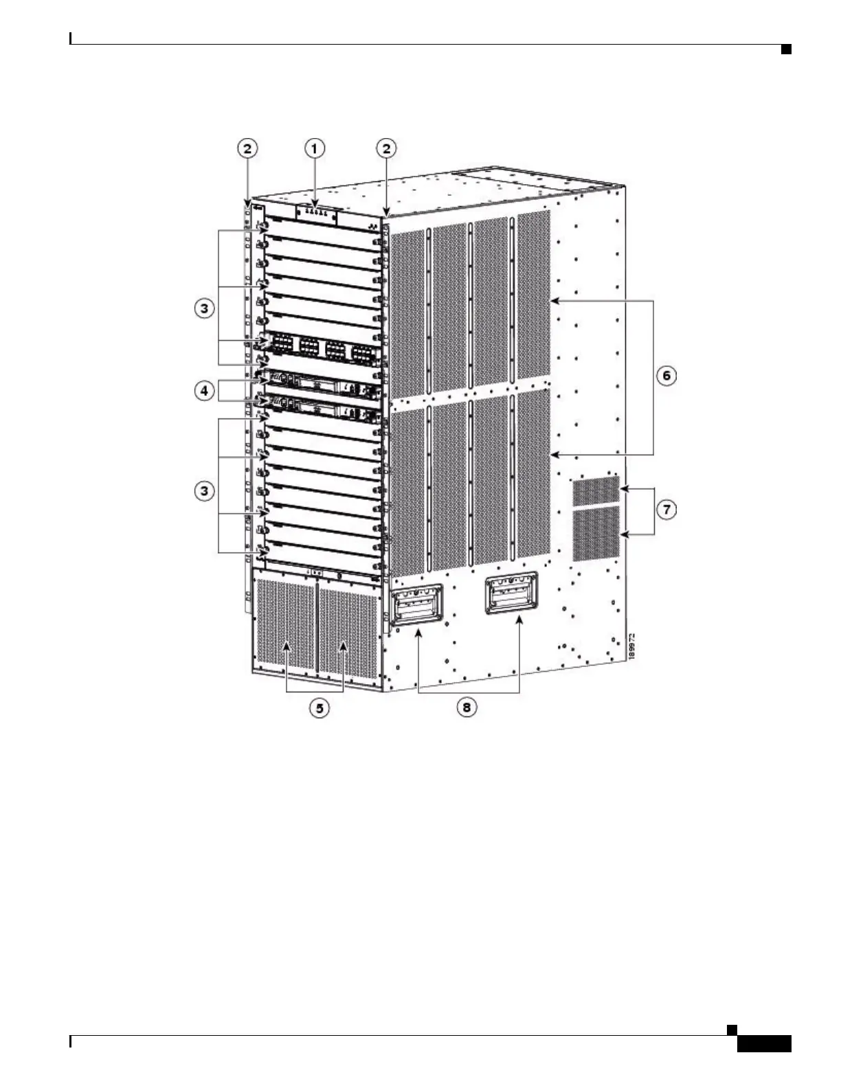 Figure 1-8 Standard Hardware Features on the Front and Sides of the Cisco Nexus 7018 Chassis