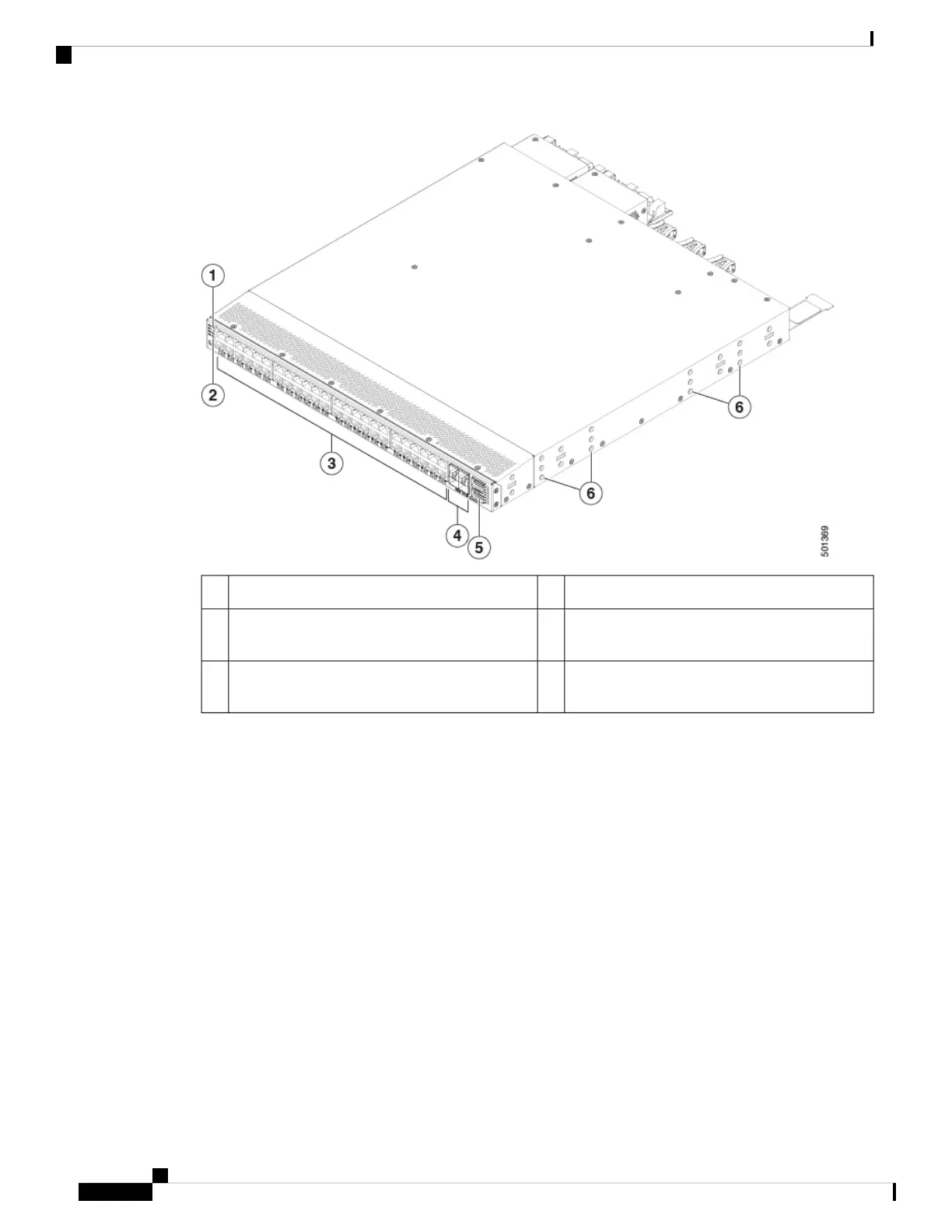 40-/100-Gigabit QSFP28 uplink ports (2)5Chassis LEDs (Beacon [BCN], Status [STS], and