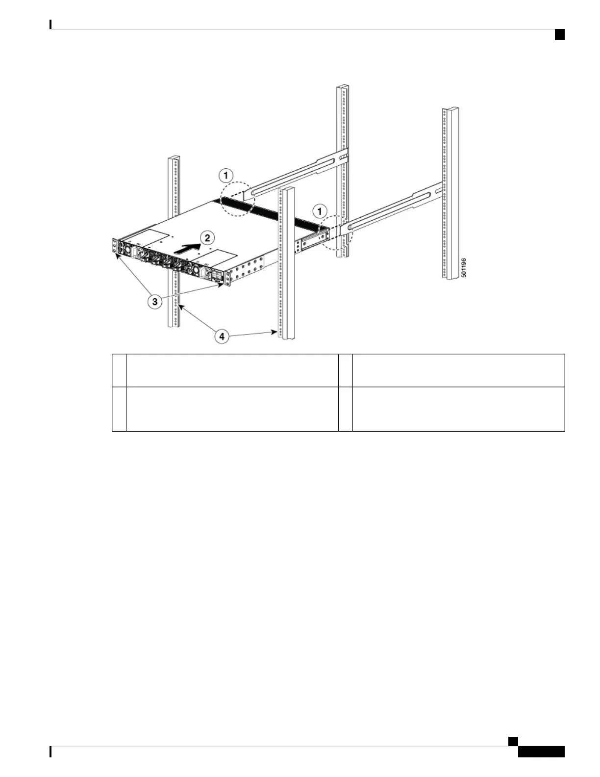 b) Align the two rear rack-mount guides on either side of the switch with the slider rails installed in the rack. Slide the