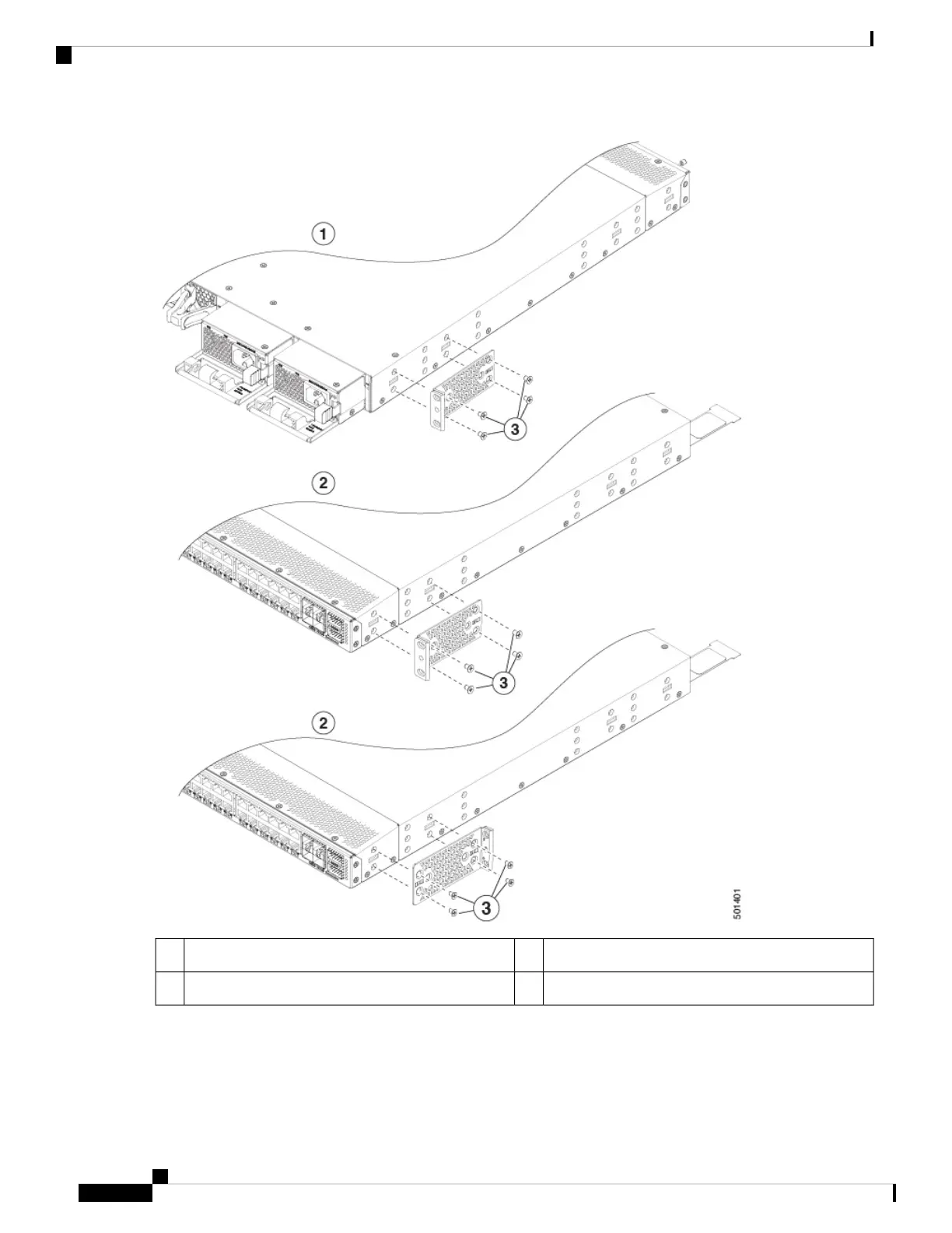 d) Repeat previous step for the other front rack-mount bracket on the other side of the switch and be sure to position