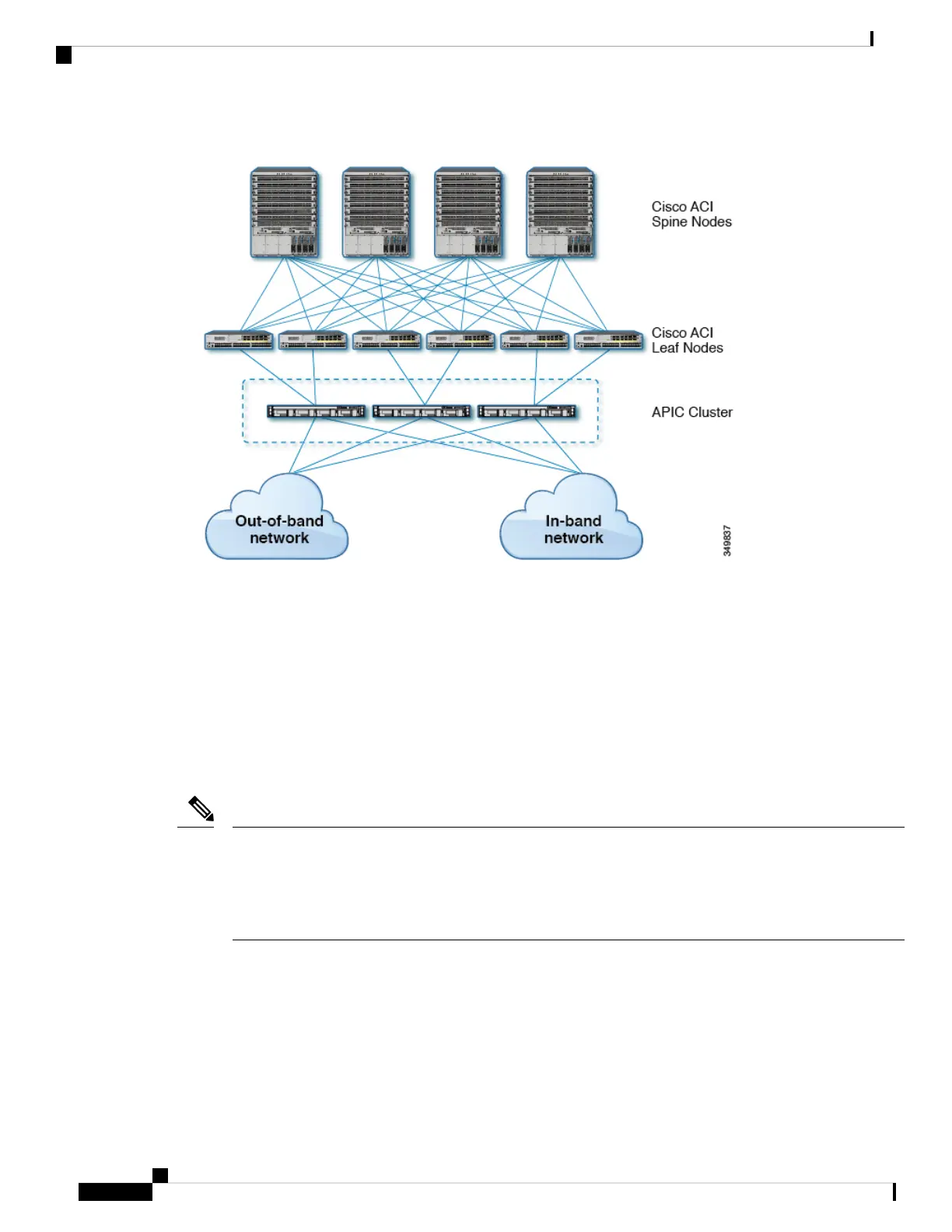 Figure 1: Connections Between APIC Clusters, Leaf Nodes, and Spine Nodes