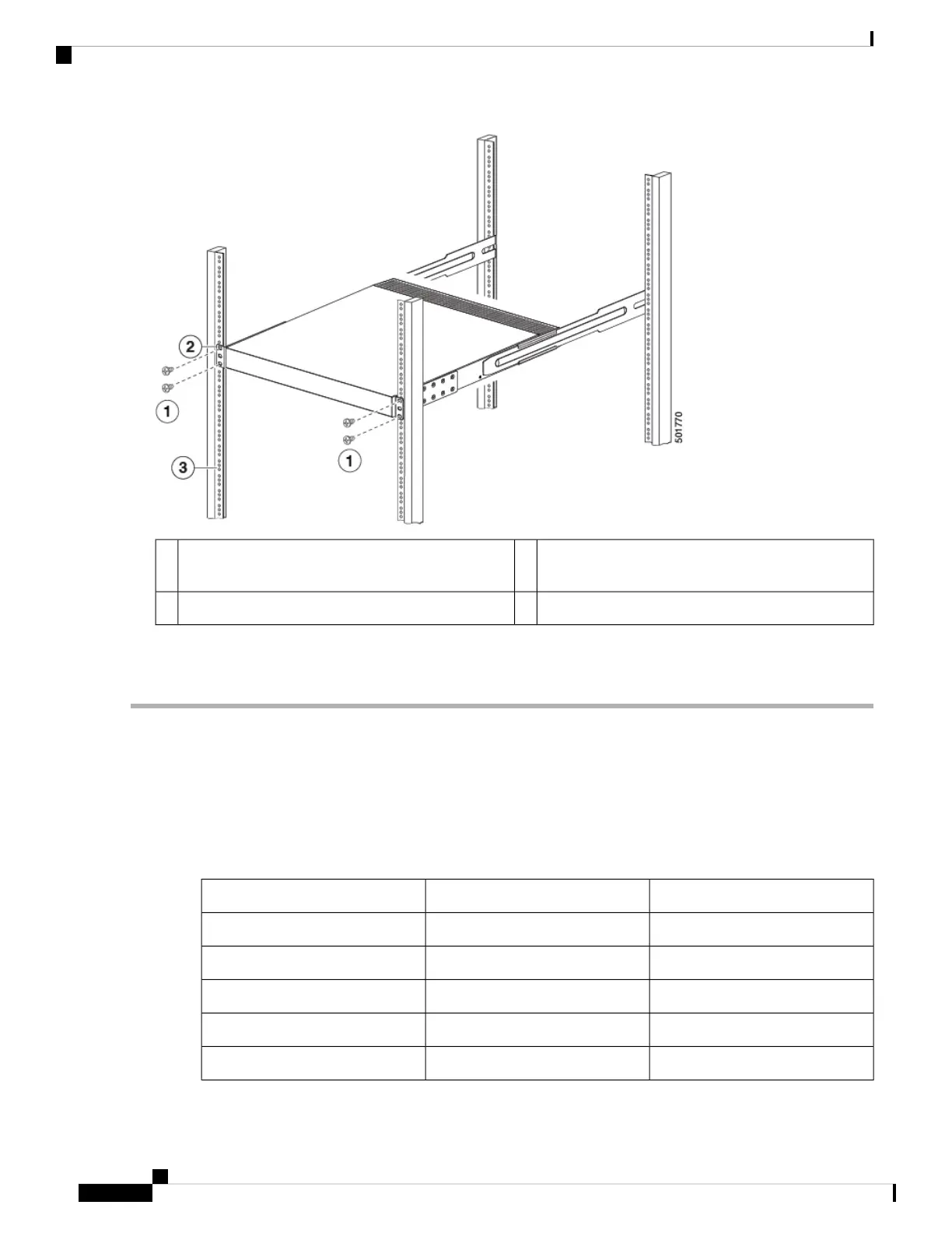Mounting rails on rack or cabinet posts.3Fasten the chassis to the front of the rack with two