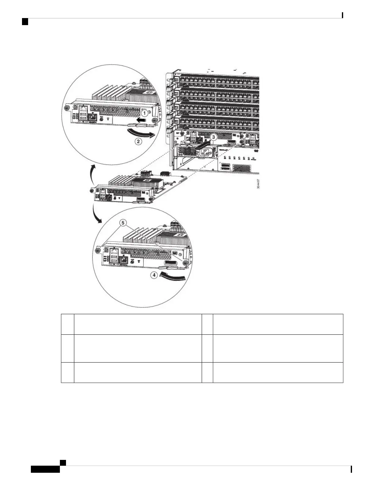 e) Screw in the two captive screws to secure the module to the chassis. Tighten the screws to 8 in-lb (0.9 N·m) of torque.