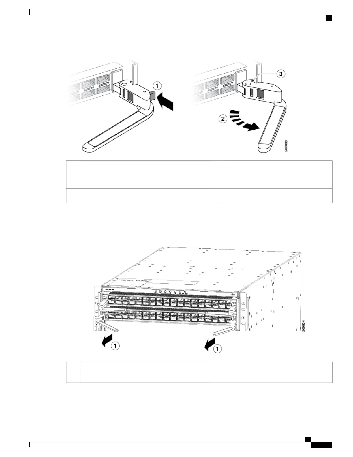 c) Pull both levers to partially slide the line card out of its slot in the chassis as shown in the following figure.