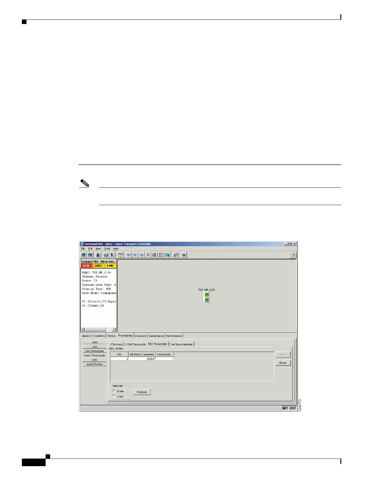 Step 2 Click the Provisioning > OTN > FEC Thresholds tabs (Figure 1-45).