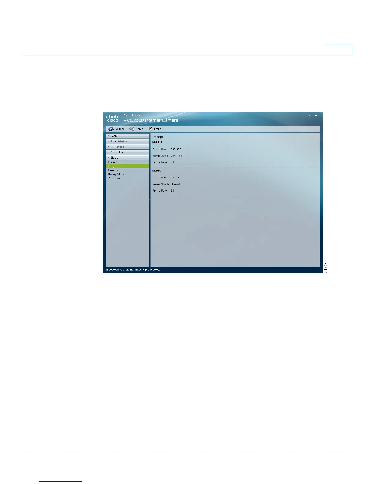 The Status > Image window displays MPEG-4 and MJPEG image status.