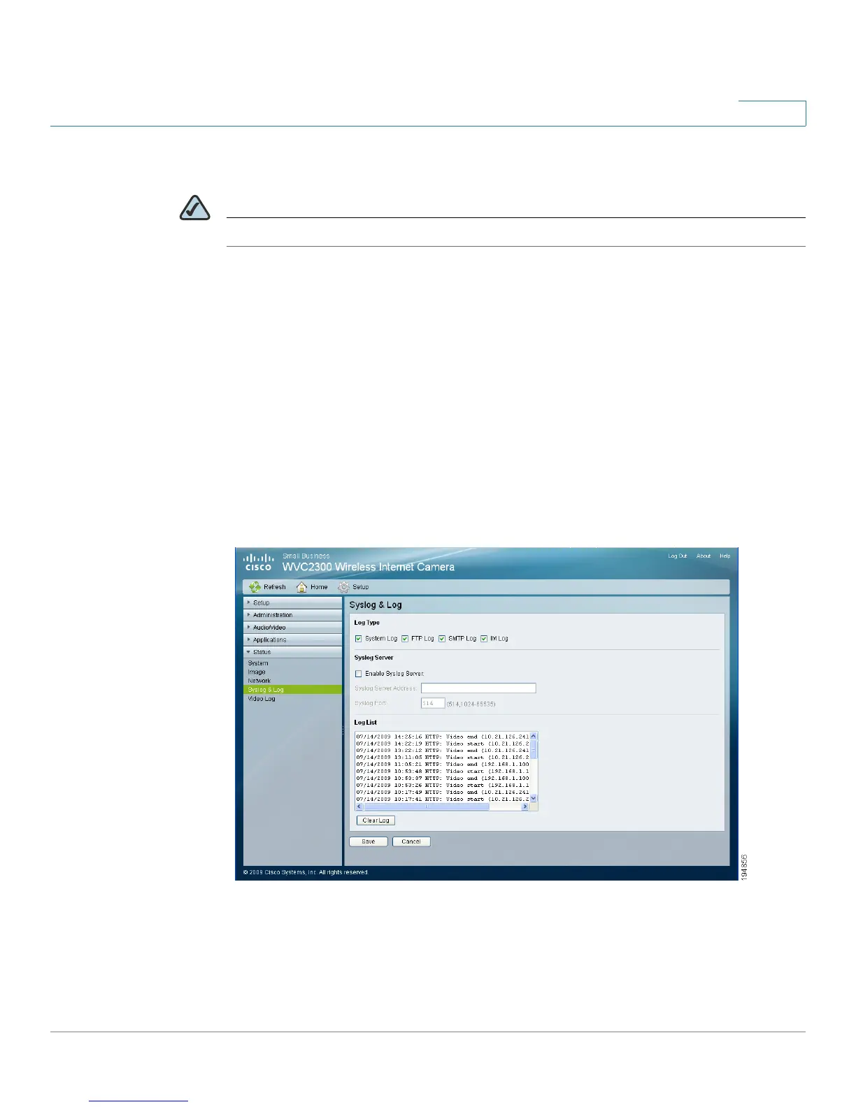 Status > Syslog & Log