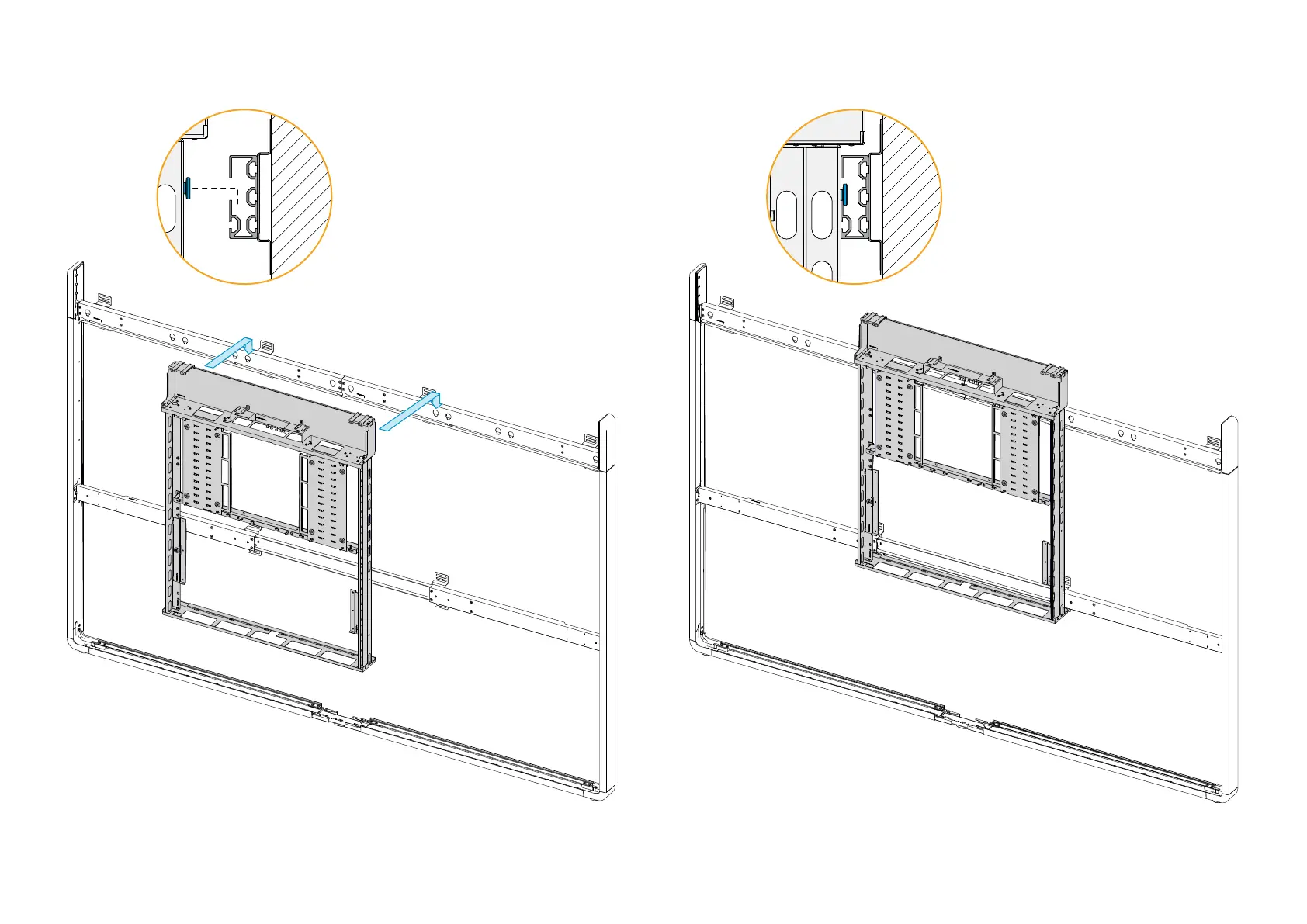 2. Hang the large screw heads at the back of the module