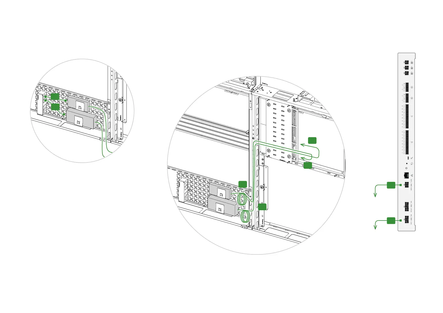 3. Guide the cables as shown in the illustration, and connect