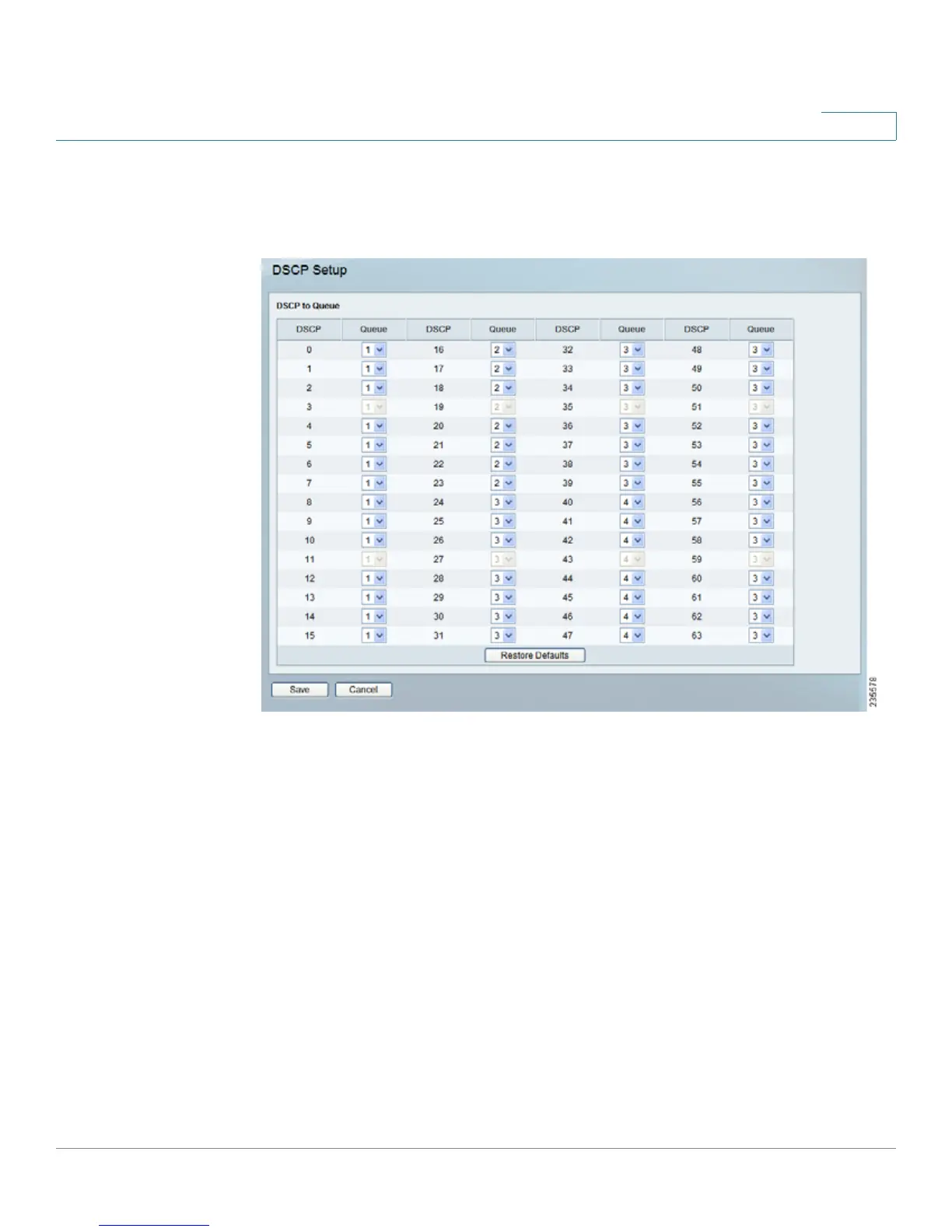Queue Select the traffic forwarding queue, 1 to 4, to which the DSCP priority is