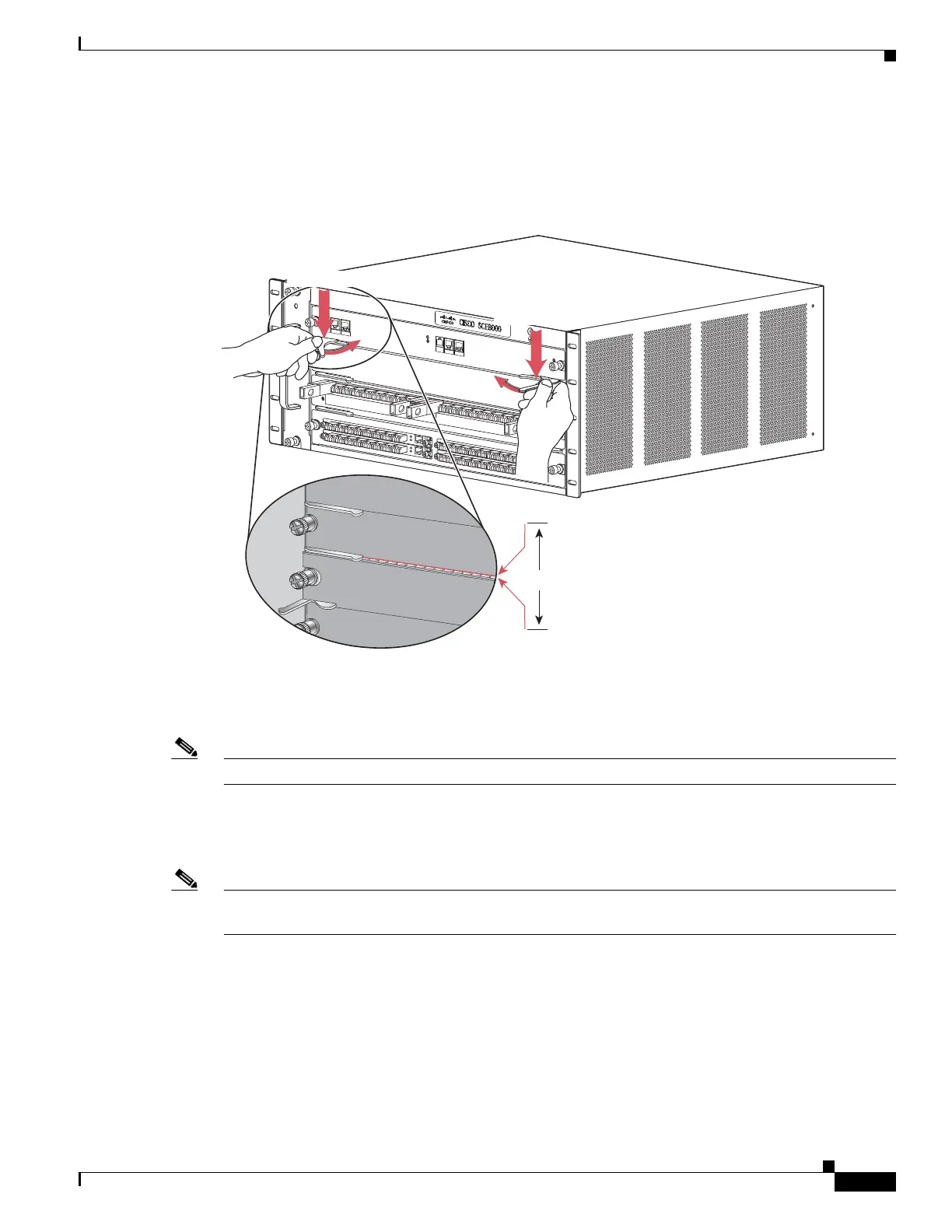 Step 10 While pressing down, simultaneously close the left and right ejector levers to fully seat the module in