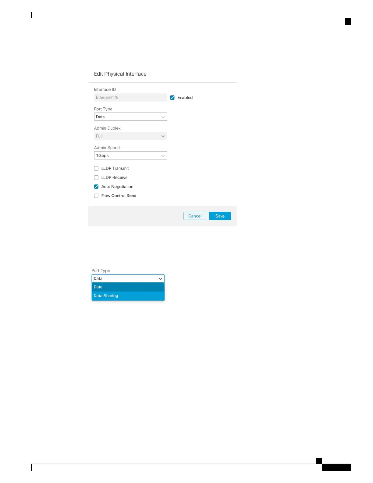 Step 5 For the Port Type, choose Data or Data Sharing.