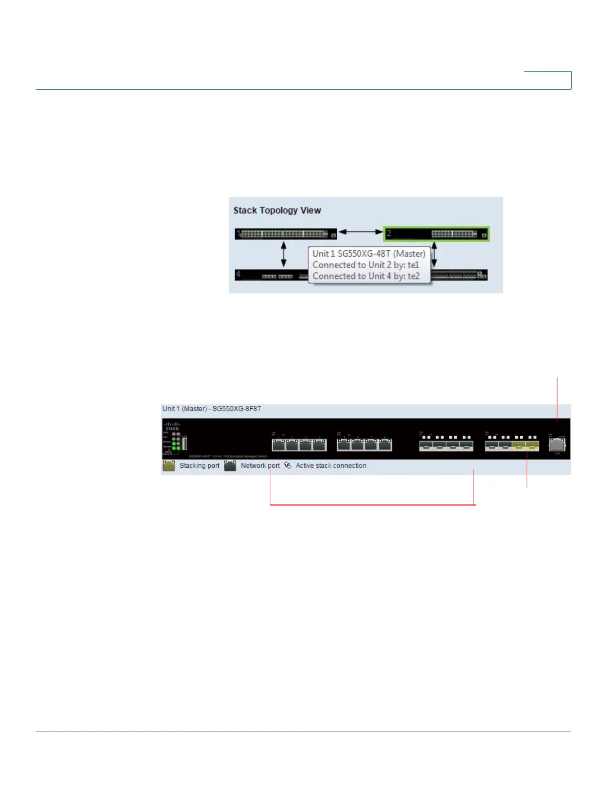 b. When you hover over a port, a tool tip displays the stacking port number, unit that it is