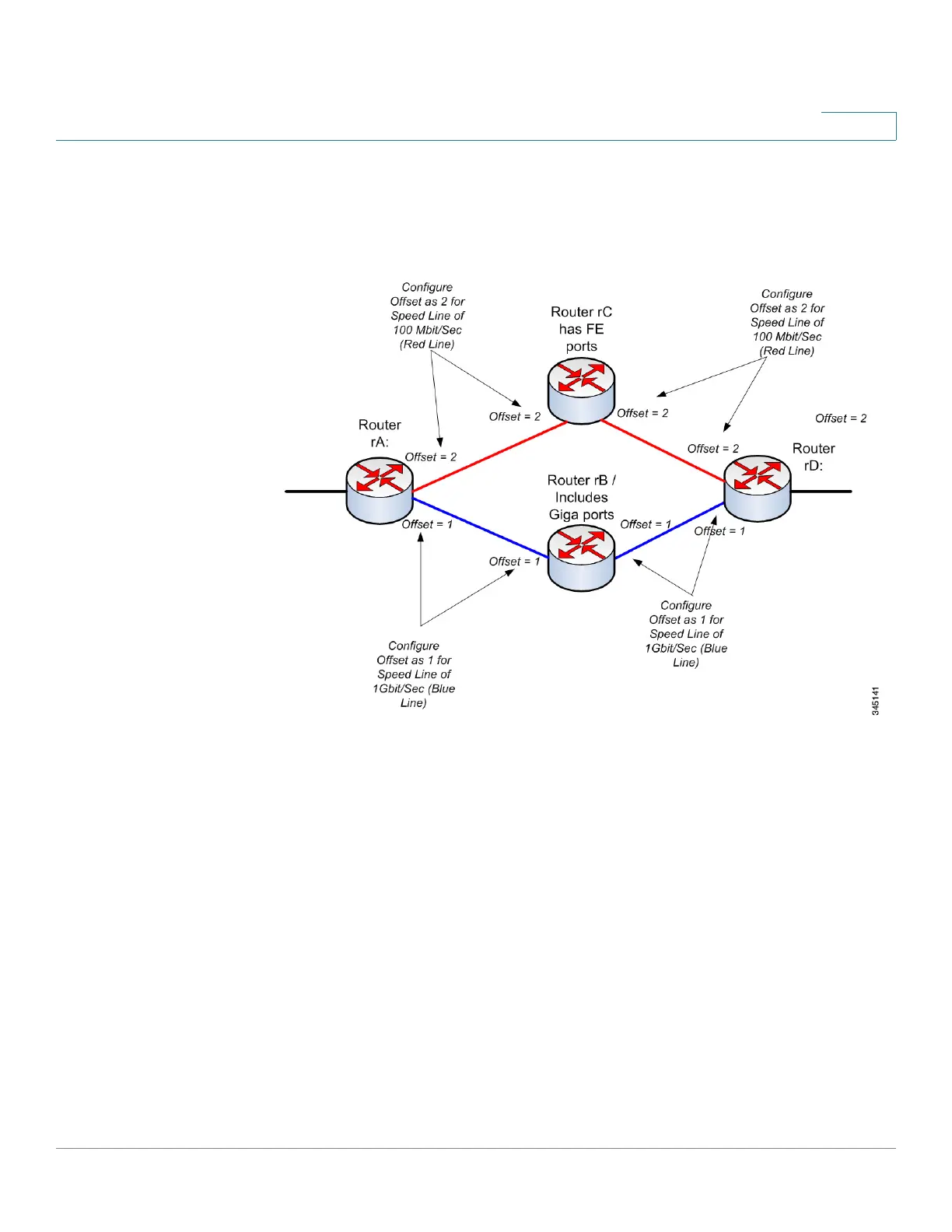 The following illustrates the configuration of the metric offset for various interfaces, based on