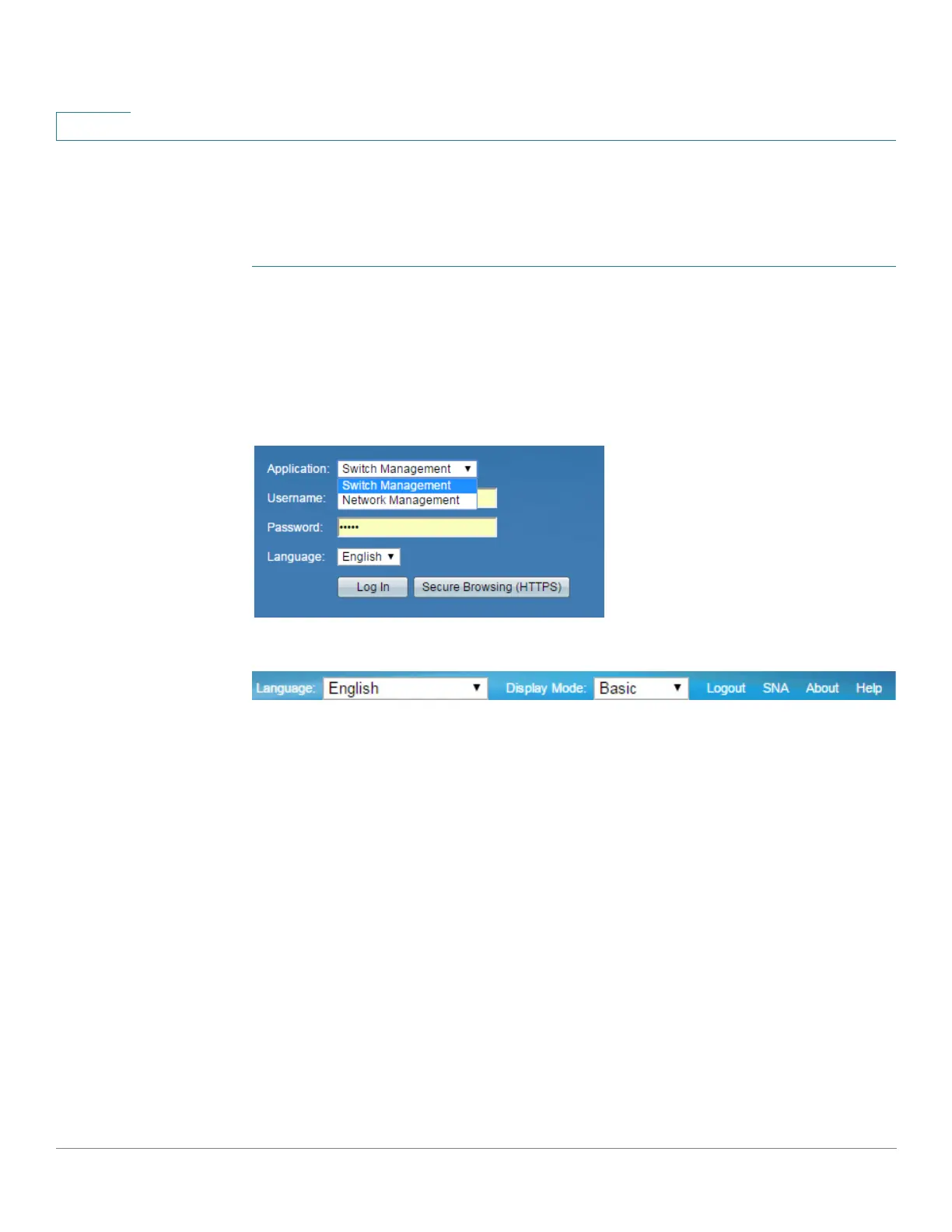 If Switch Management is selected, you can select SNA from the top banner, as shown below.