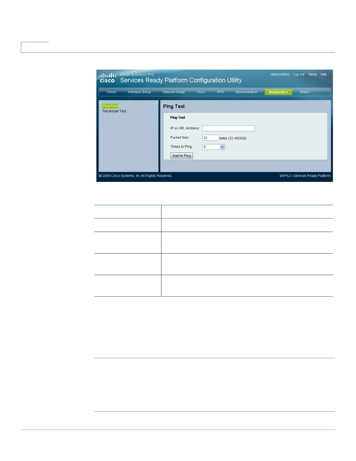 STEP 1 Click Diagnostics on the tab and then click Traceroute Test in the navigation pane.