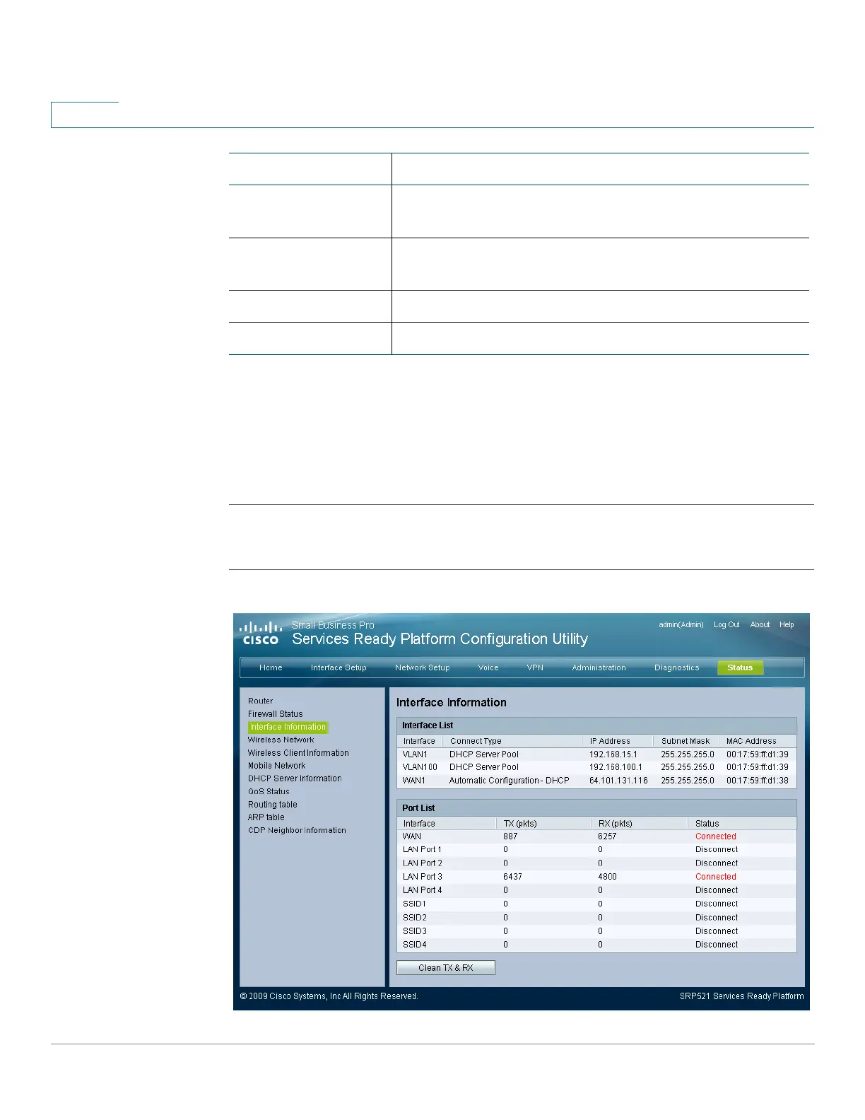 STEP 1 Click Status on the tab and then click Interface Information in the navigation pane.