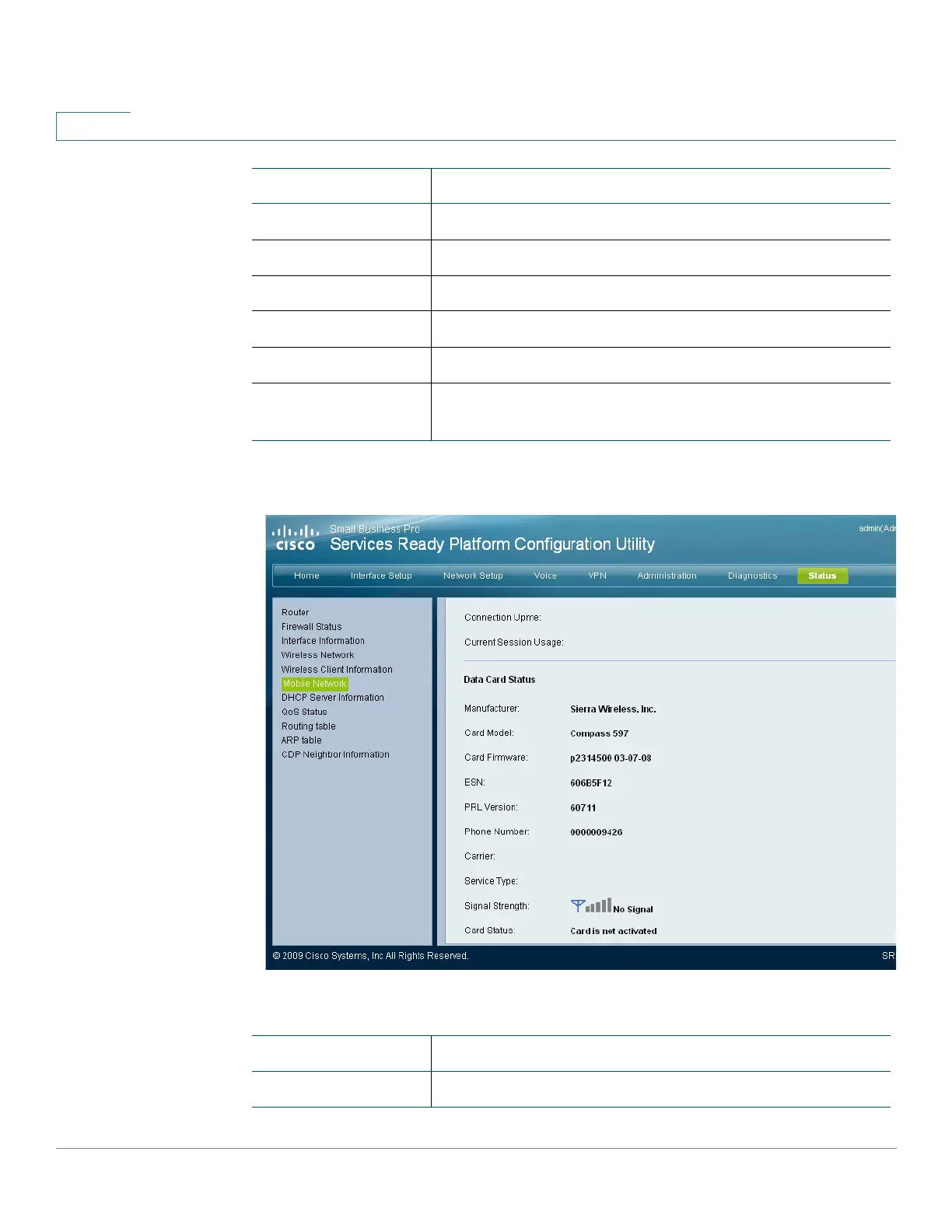 Card status The status of the card: Connecting, Connected,