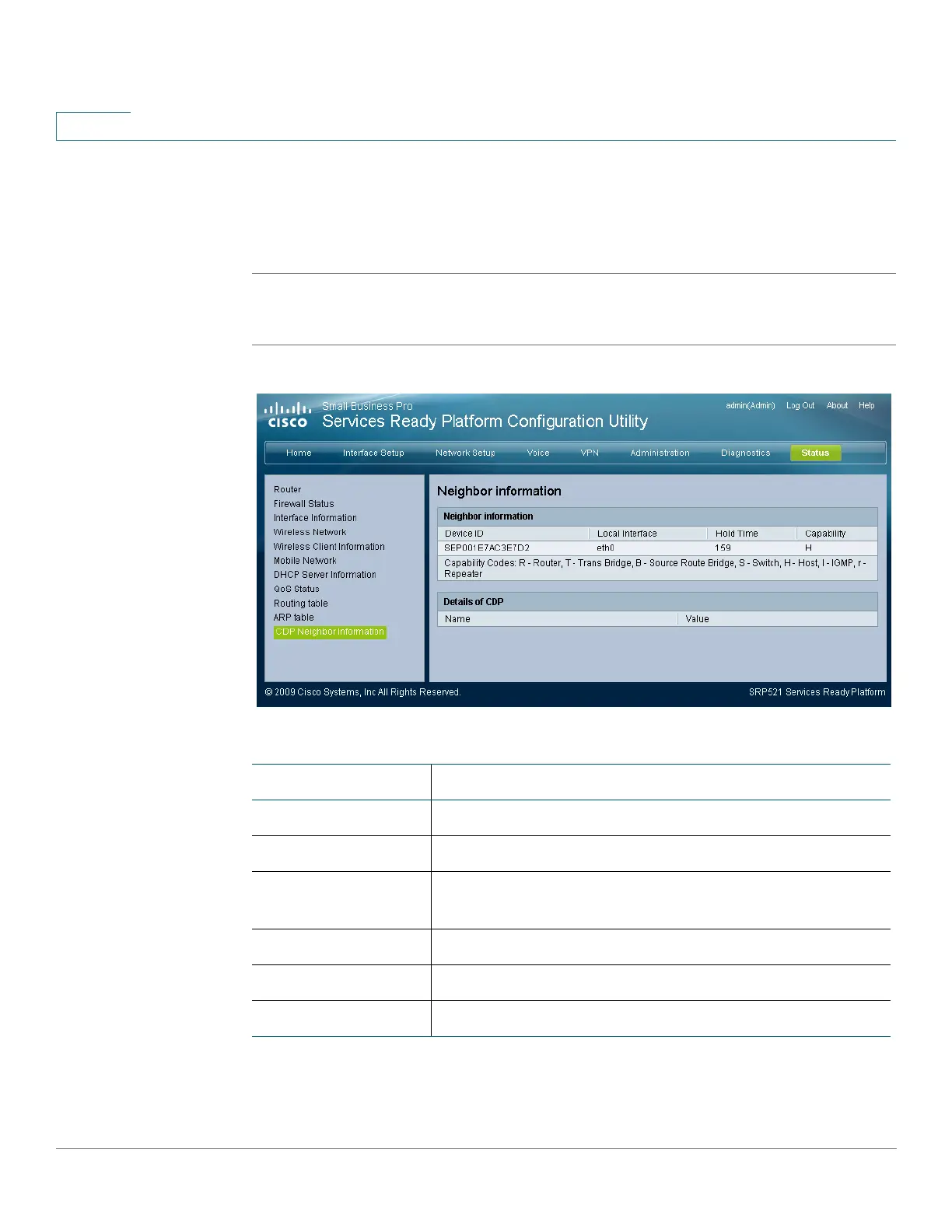 STEP 1 Click Status on the tab and then click Neighbor Information in the navigation pane.