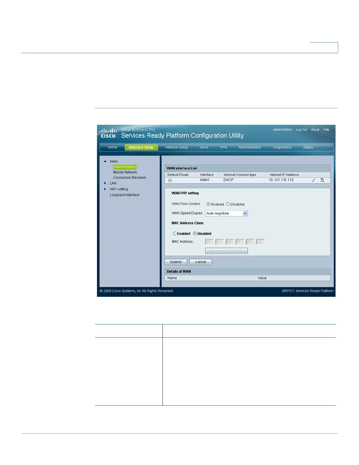 WAN Interface List The WAN Interface list which shows the physical link, its