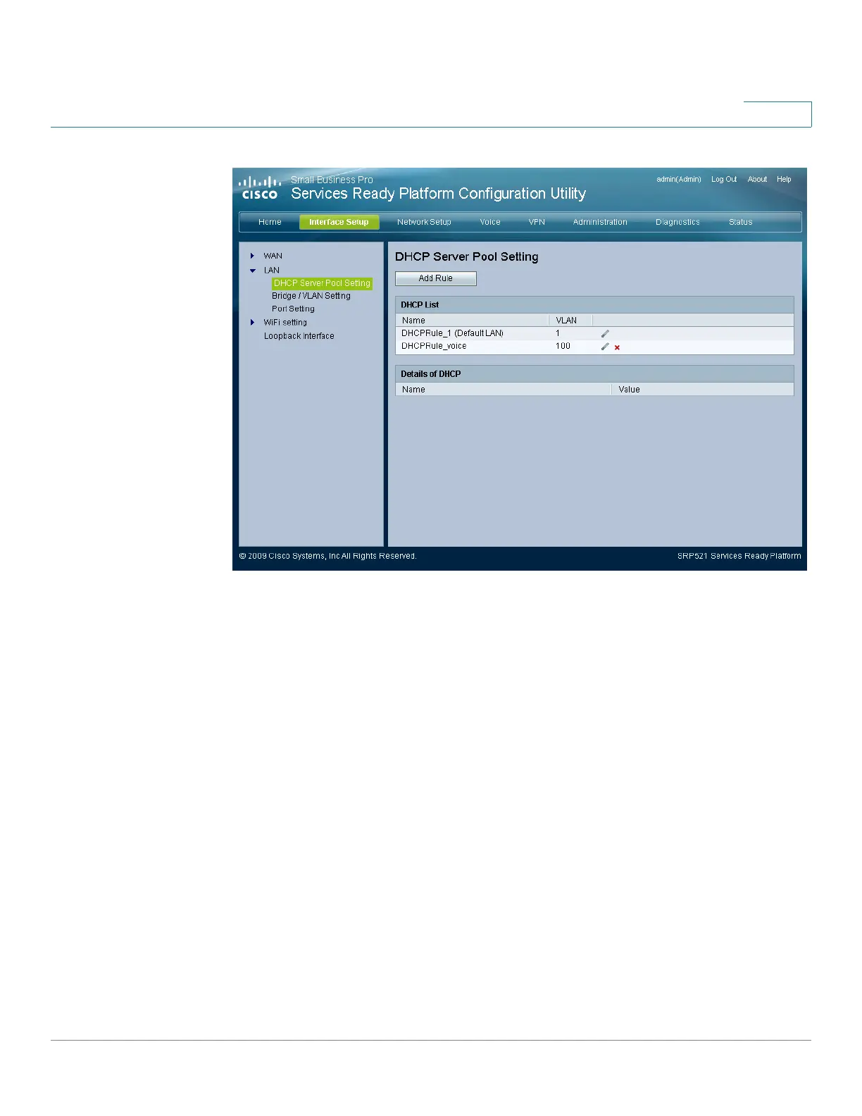 Click one of the items in the DHCP List. DHCP information displays in the Details of