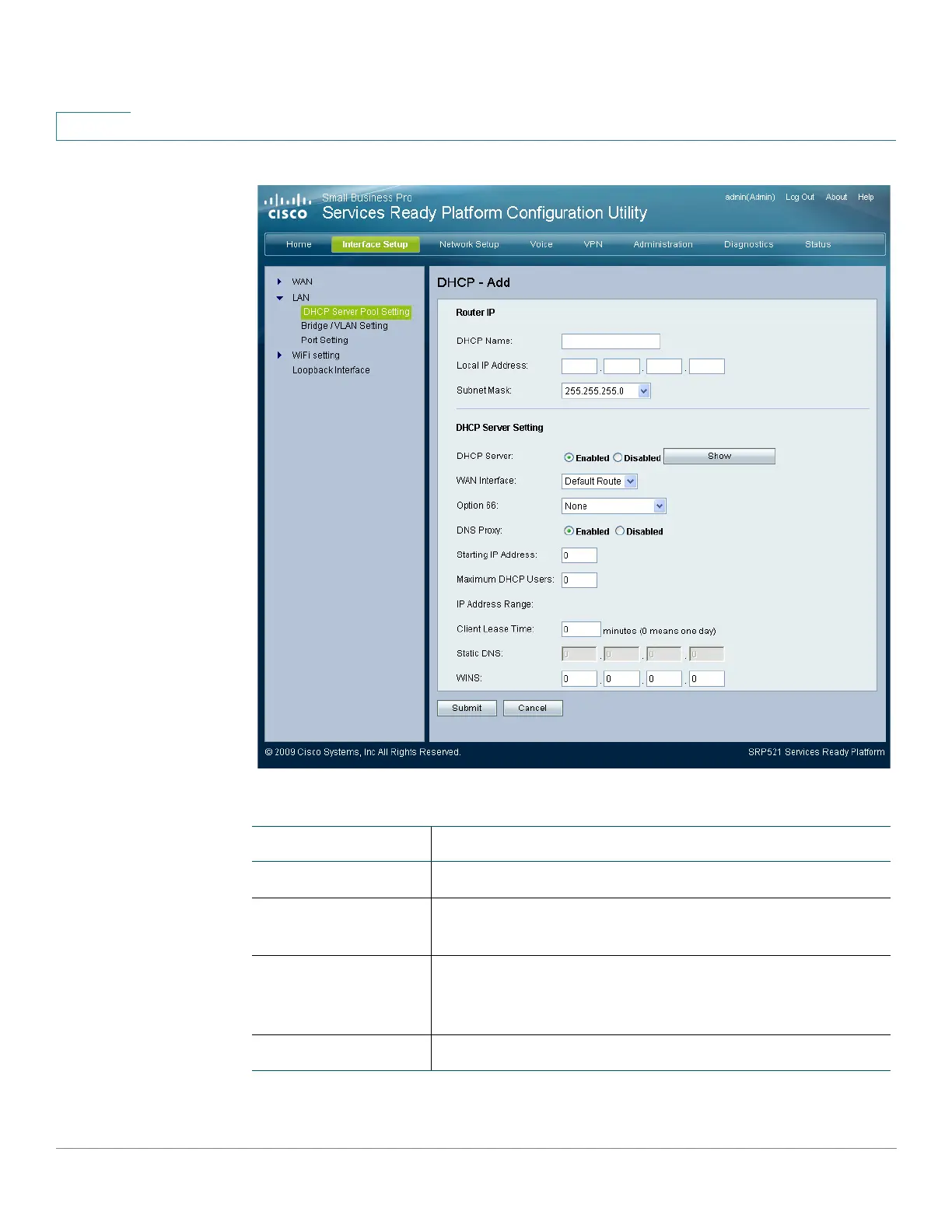 DHCP Server The DHCP server status. DHCP is enabled by factory