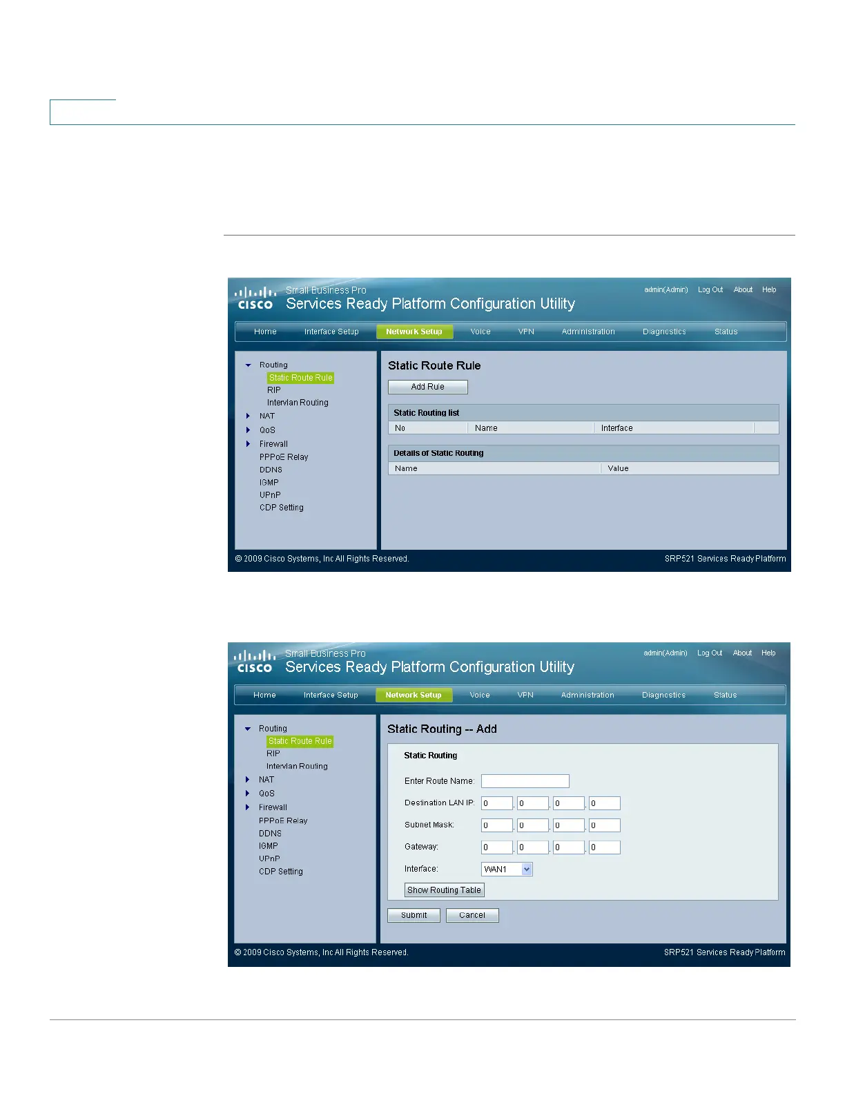After clicking the Add Rule button, the Static Routing Add page opens.