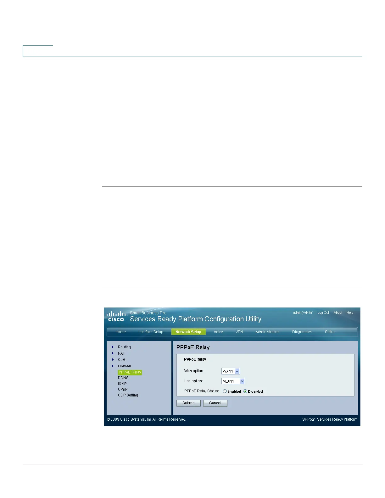 STEP 5 To enable the PPPoE Relay feature for the Internet side, click Enabled.
