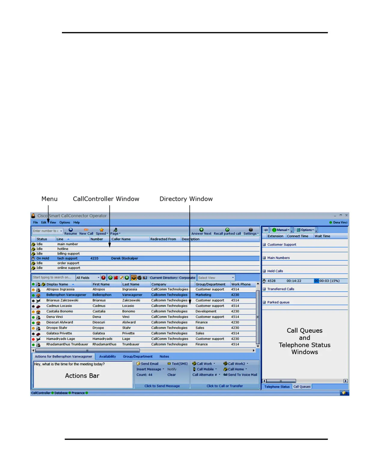 • Call Window: Displays the calls on the operator’s phone and provides access to the