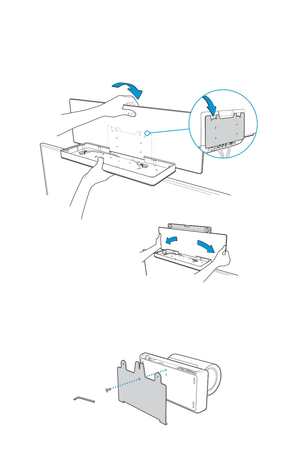 Hold and lift the unit as illustrated. Carefully place the unit onto the wall bracket.