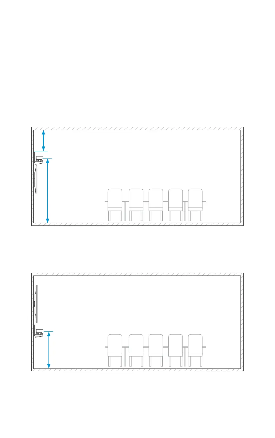 Select a mounting height for SpeakerTrack 60 that provides clear line of sight, to all four