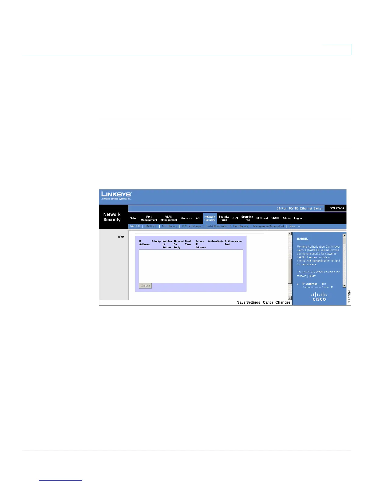 STEP 3 Click Delete. The RADIUS server configuration is removed from the RADIUS Table.