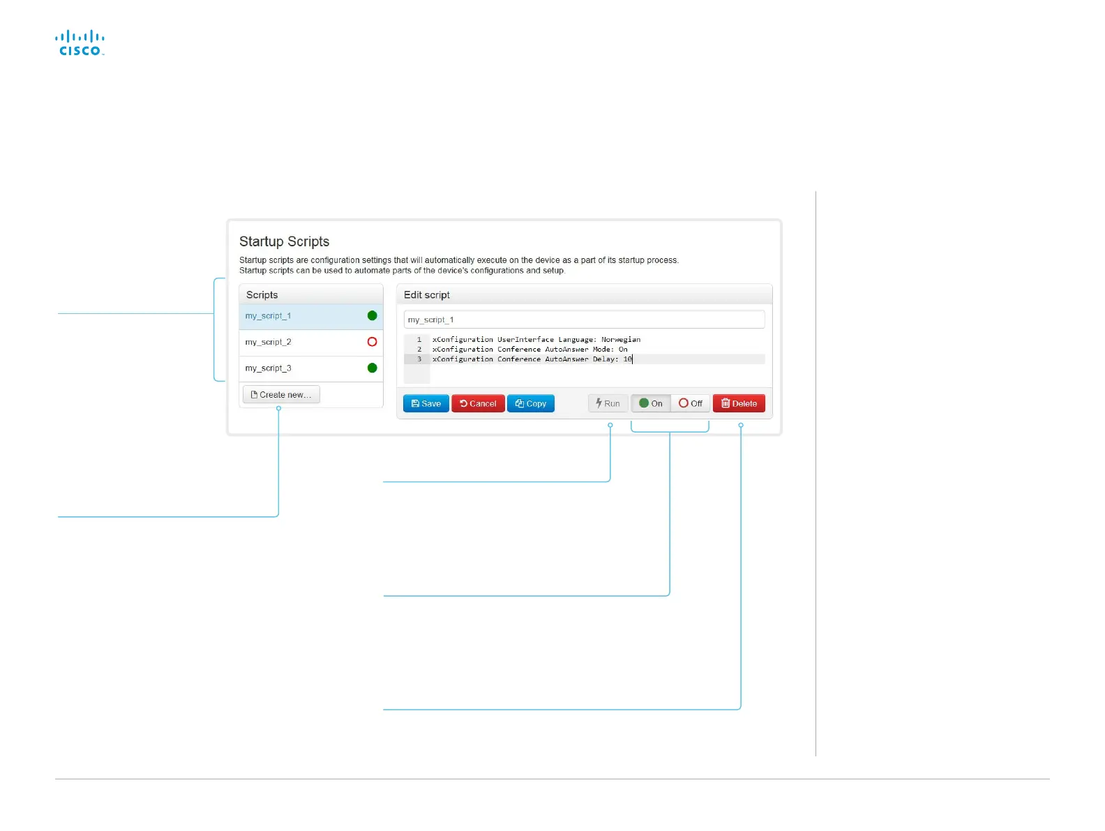 The script names and configurations shown in the illustration serve as examples. You may make your own scripts.