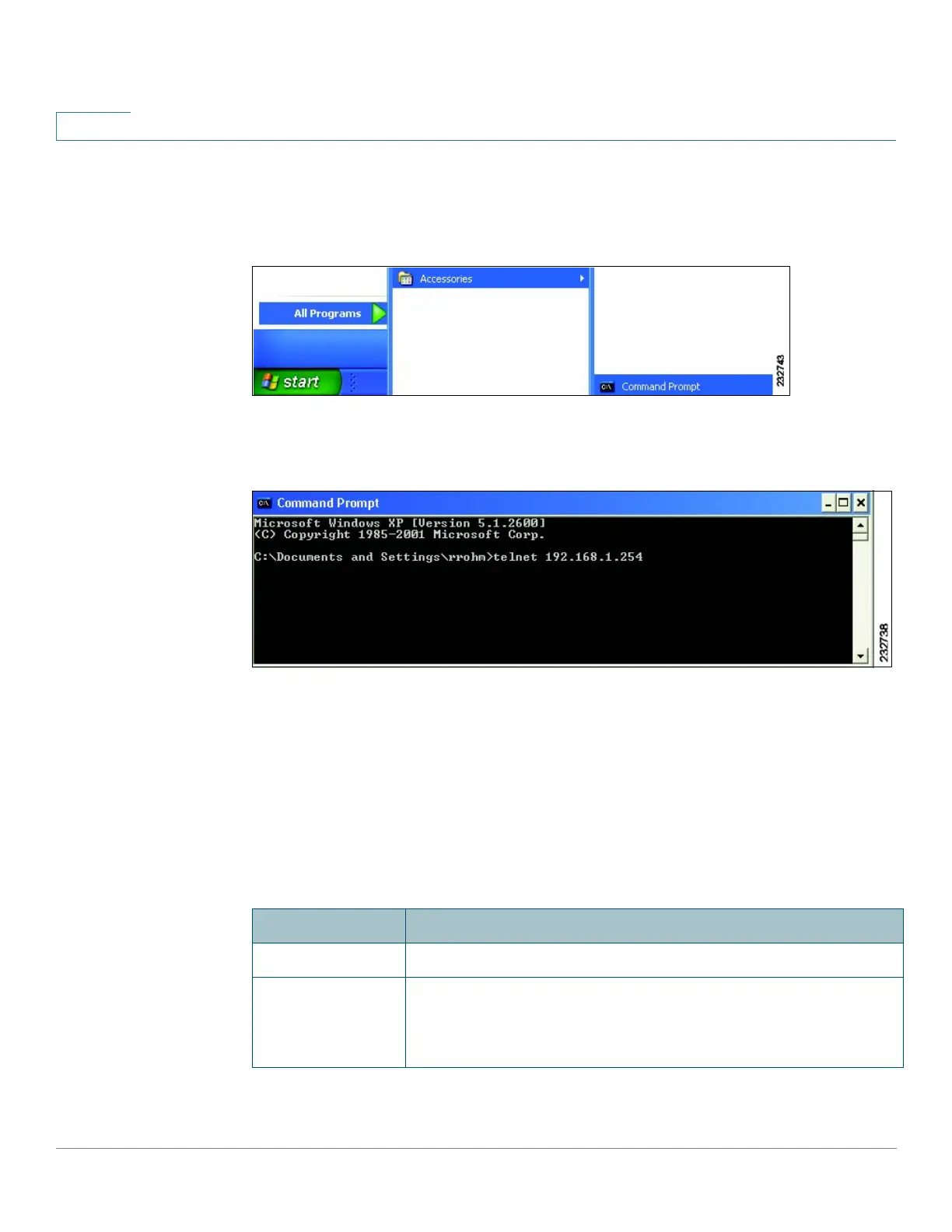 STEP 2 At the prompt, enter telnet 1<IP address of switch>, then press Enter.
