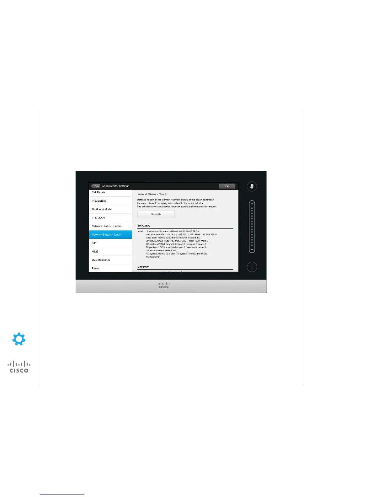 Administrator Settings—Network Status Touch