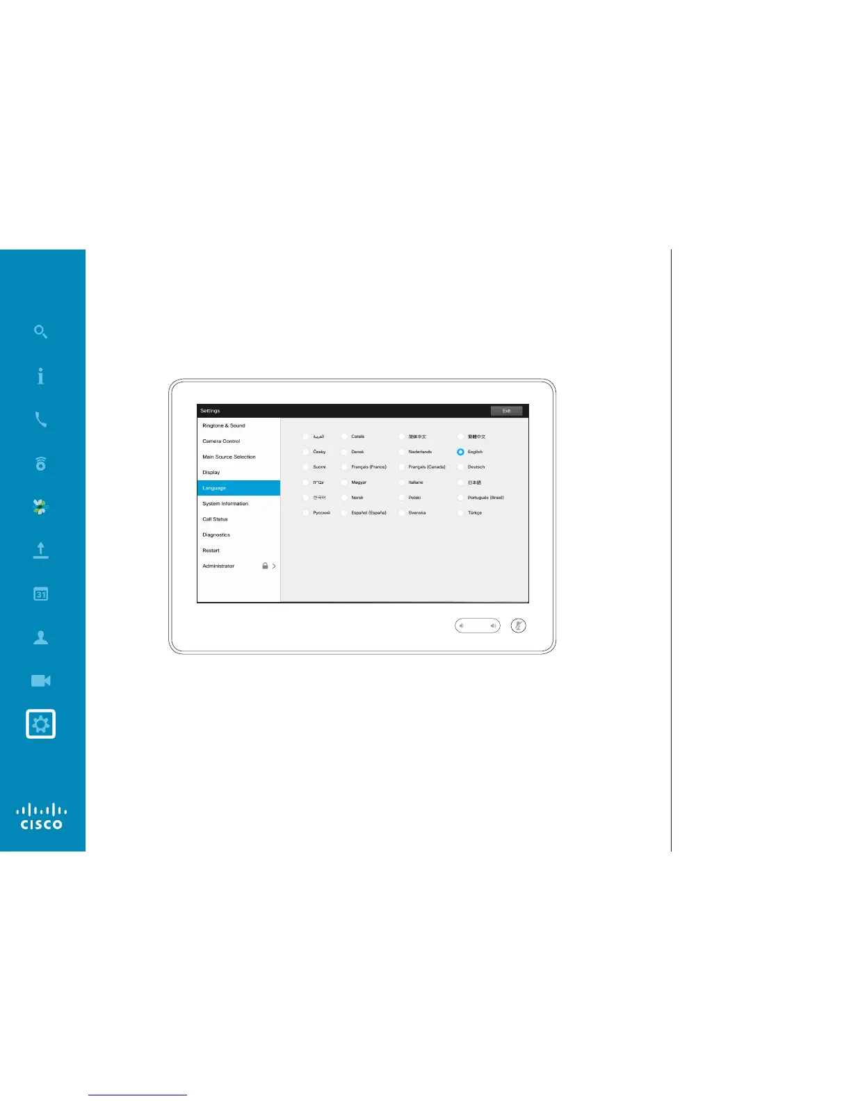 Cisco TelePresence SX20 - About Language Setting; Select Language